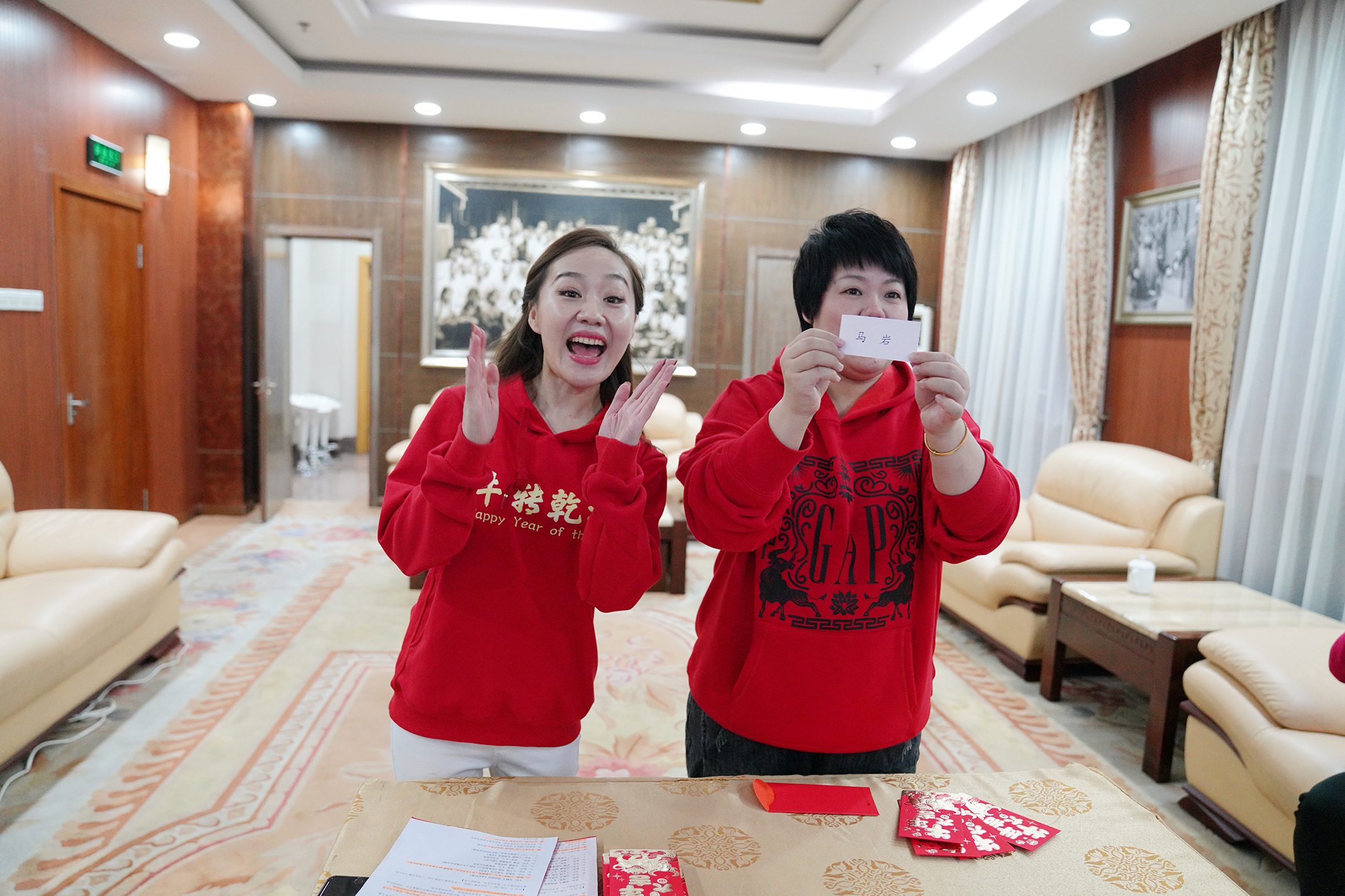在表演节目之余,工会组织了精彩的抽奖环节。为了保证此次活动的公平、公正、公开,主持人将27位参加者的名单在镜头前向大家一一展示,并逐一放入准备好的红包中,并由学院领导依次抽取。党委书记毕兆炜、院长黄珊珊等分别为大家抽取了一二三等奖。