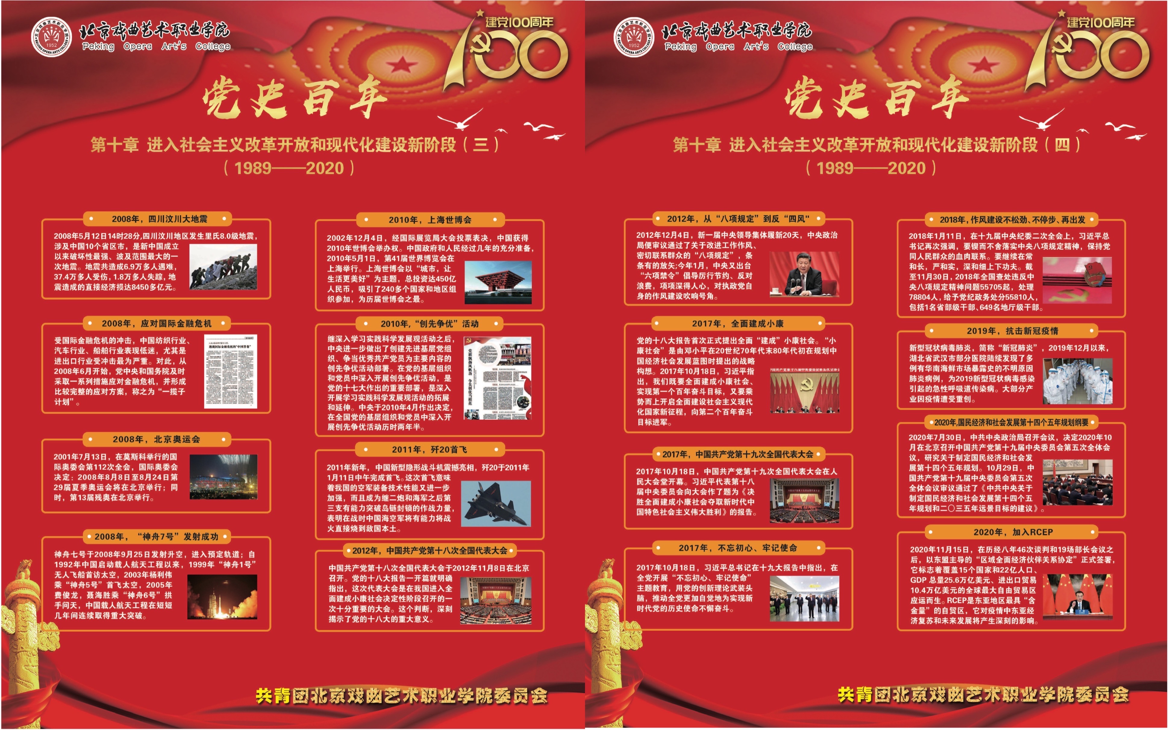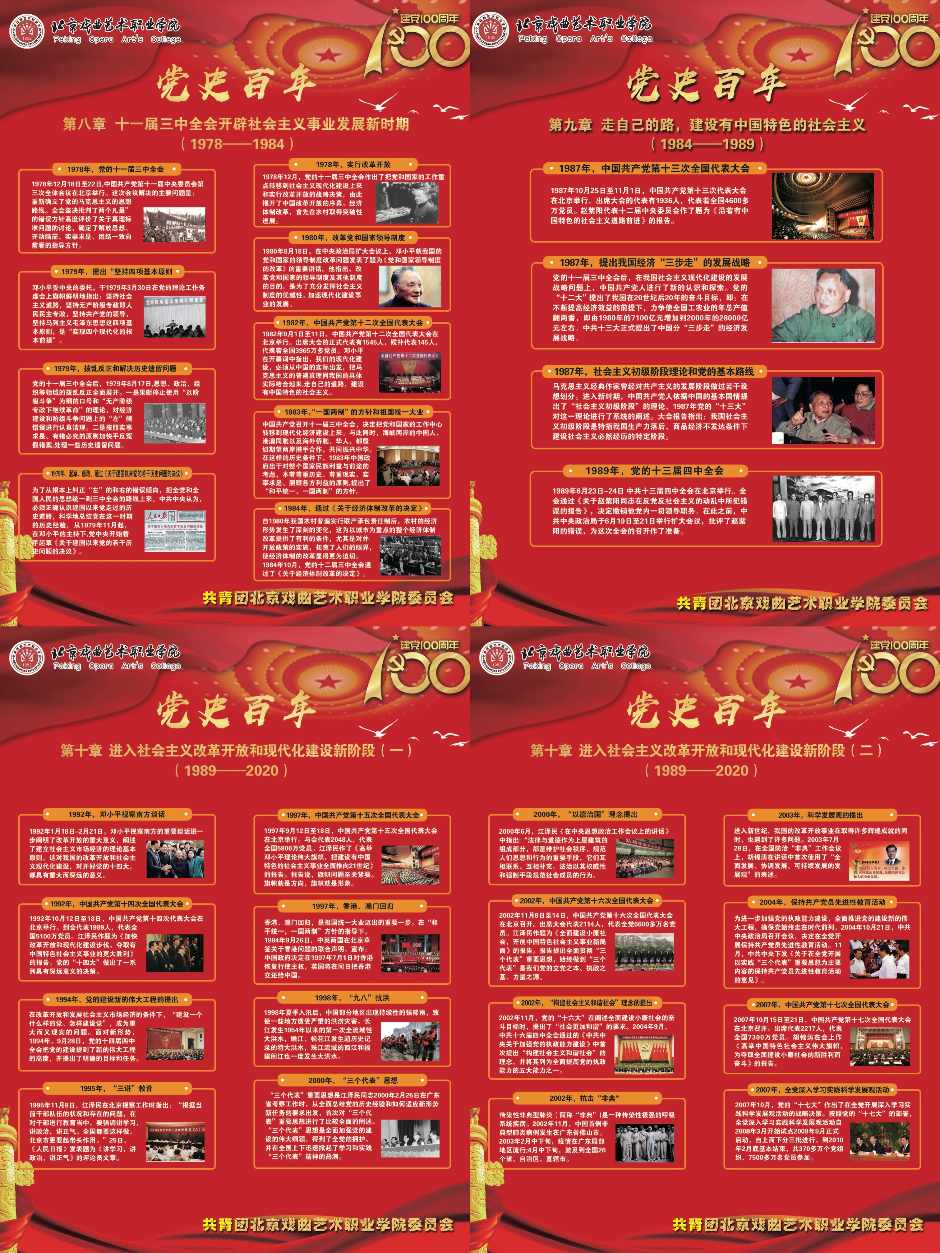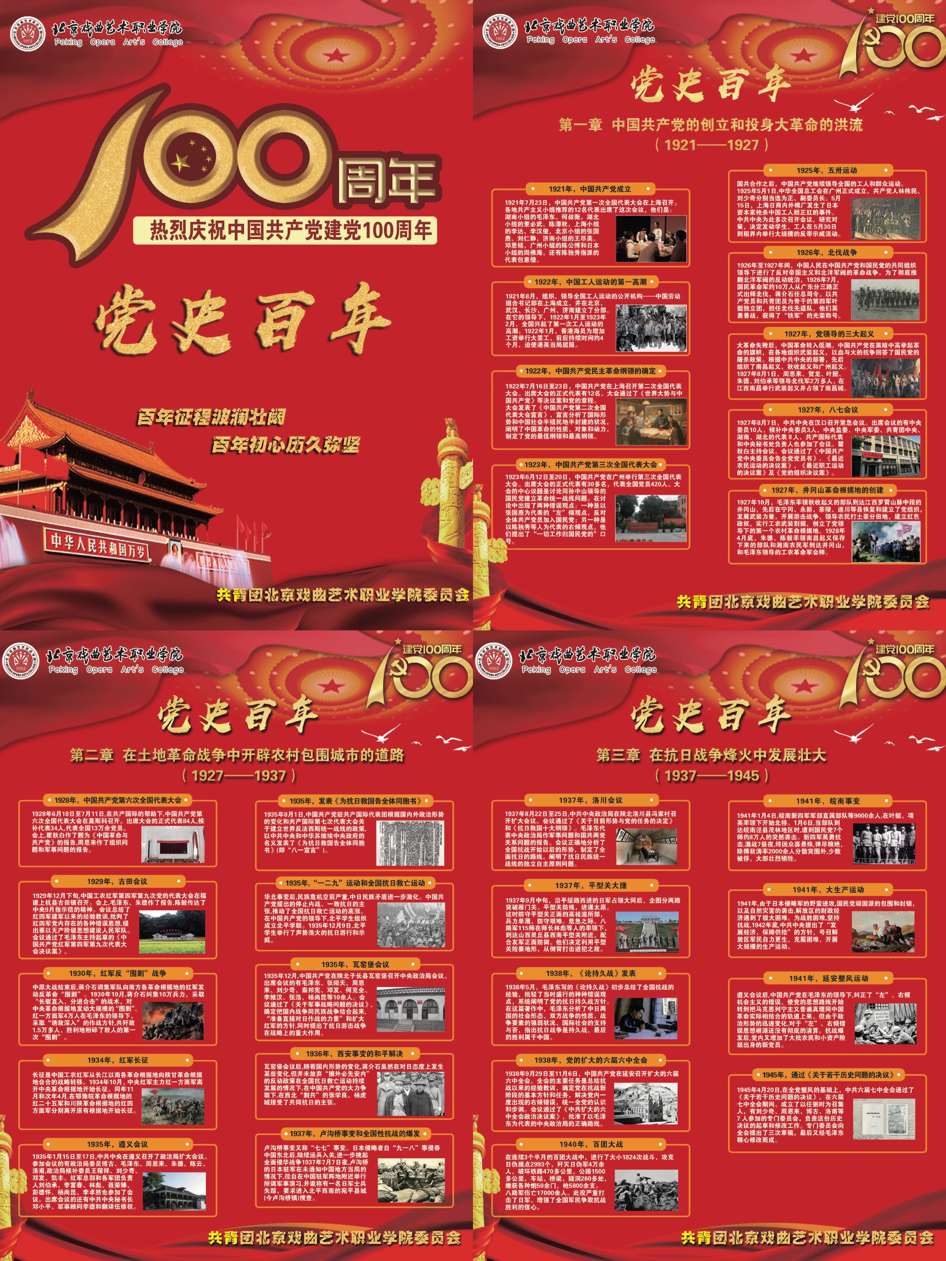 在中国共产党百年的奋斗历程中,中国共青团始终与党同心,与党同行,在党的领导下,共青团用青春和热血书写了壮丽的青春诗篇。为切实激发我院广大团员青年爱党爱国热情,学期初,学院团委规划整理了“党史百年”的资料,并在校园宣传橱窗内进行展出。