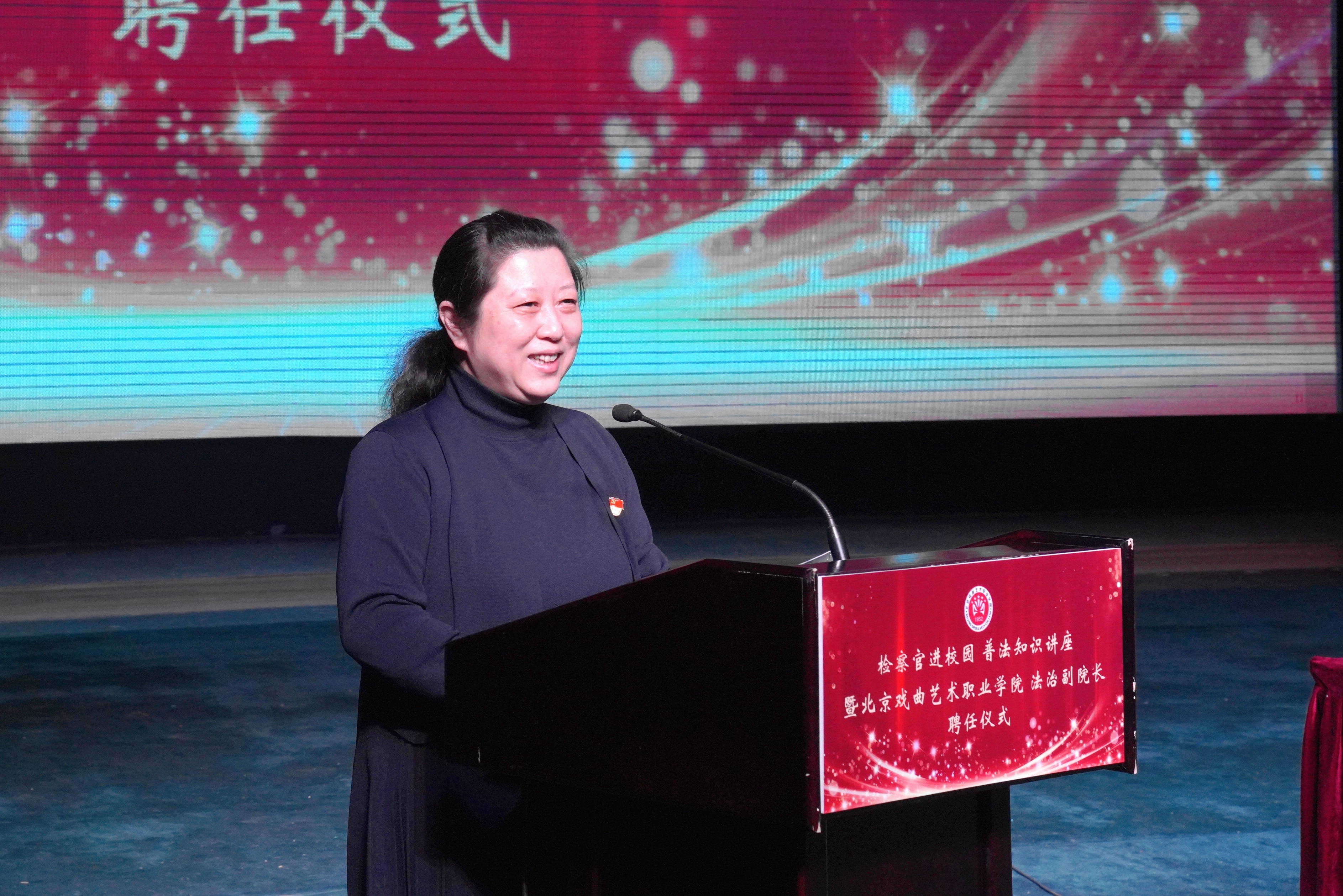 为深入开展依法治校工作,提高中专学生的思想道德水平和法律素养,2021年4月28日下午,北京市人民检察院第二分院党组书记、检察长张玉鲲,党组成员、政治部主任、机关党委书记曾铁军,二级巡视员曹健等同志莅临我院参加北京戏曲艺术职业学院法治副院长聘任仪式暨普法进校园启动大会。大会开始前,市检二分院的同志们在我院党委书记毕兆炜、院长黄珊珊的陪同下,参观了我院的京剧校史展,对我院办学历史、深厚的传统文化底蕴和为传承传统文化所作的努力深表赞赏。院长黄珊珊、副院长黄平以及学院相关部门负责人,各系辅导员、班主任、全体中专学生参加了本次大会。大会由学生处负责人李洋主持。