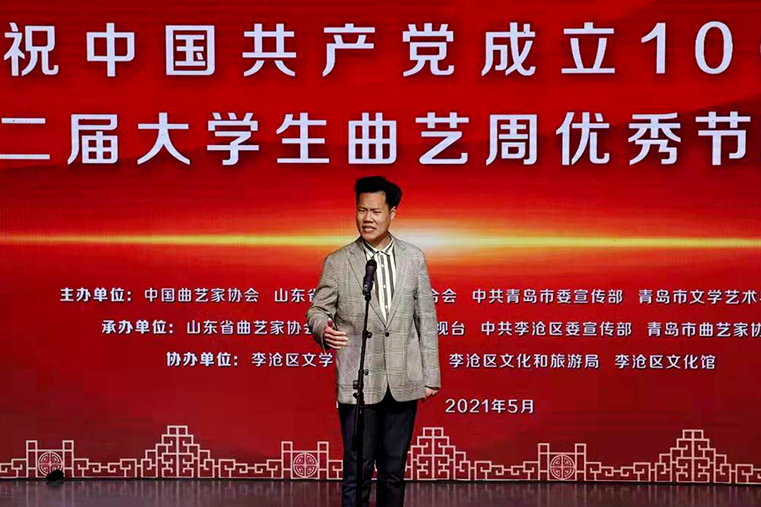 5月2日,我院曲艺系主任张怡率师生赴青岛参加由中国曲协和山东省文联主办的“永远跟党走”庆祝中国共党成立100周年第二届大学生曲艺周展演活动。我院曲艺系学生穆志恒表演的评书《慷慨赞歌》,程淑杰表演的单弦《北京小吃赞》分别在青岛市李沧区文化馆、中国海洋大学(华东)、青岛理工大学演出,受到业内专家和现场观众的一致好评。