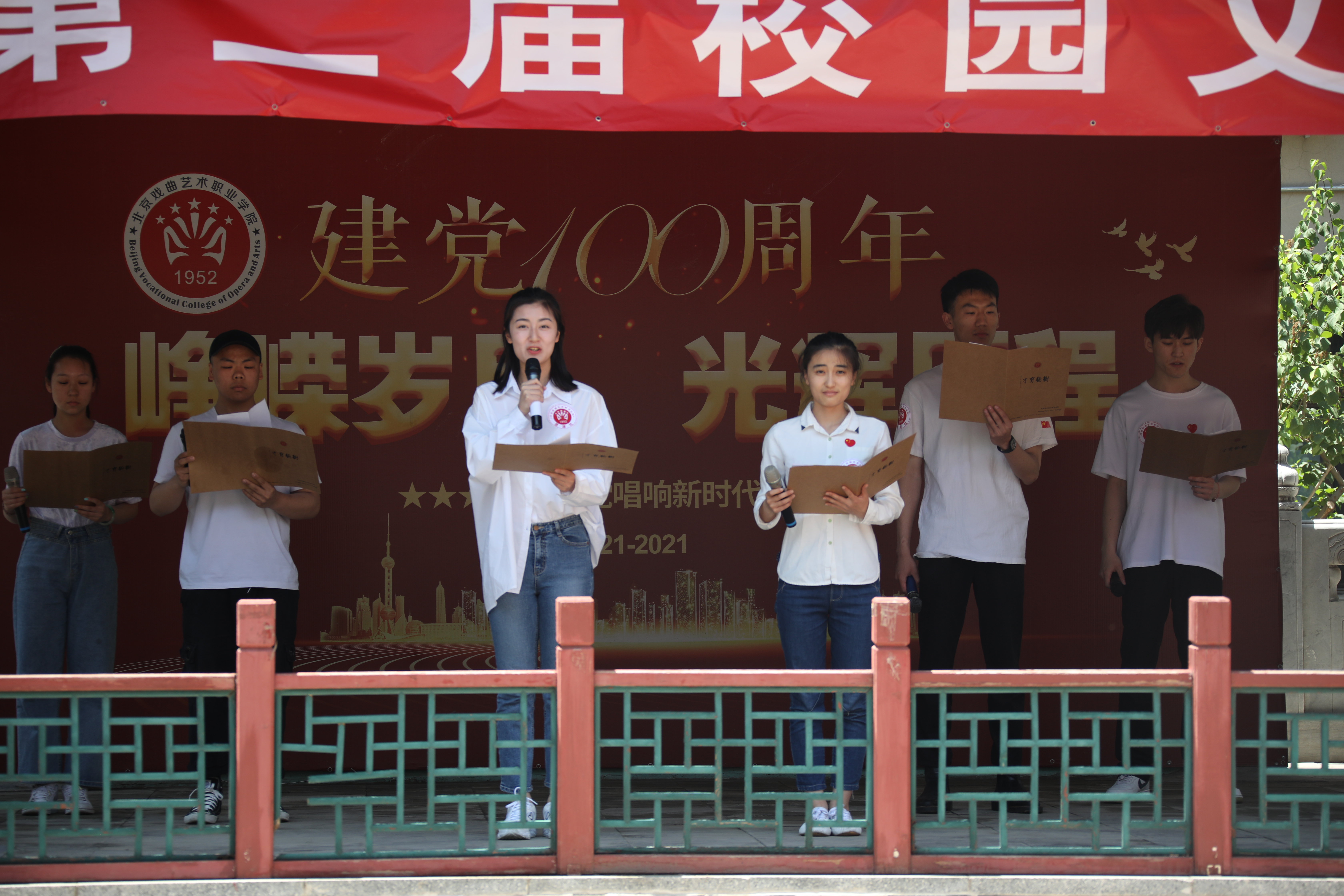 院长黄珊珊宣布“第二届校园文化节开幕”。党委书记毕兆炜致辞,对第二届校园文化节的开幕表示热烈祝贺!鼓励学生社团在活动中充分展示才艺,丰富校园文化生活!同时加强安全教育,为校园安全做出贡献,用实际行动向建党百年献礼!