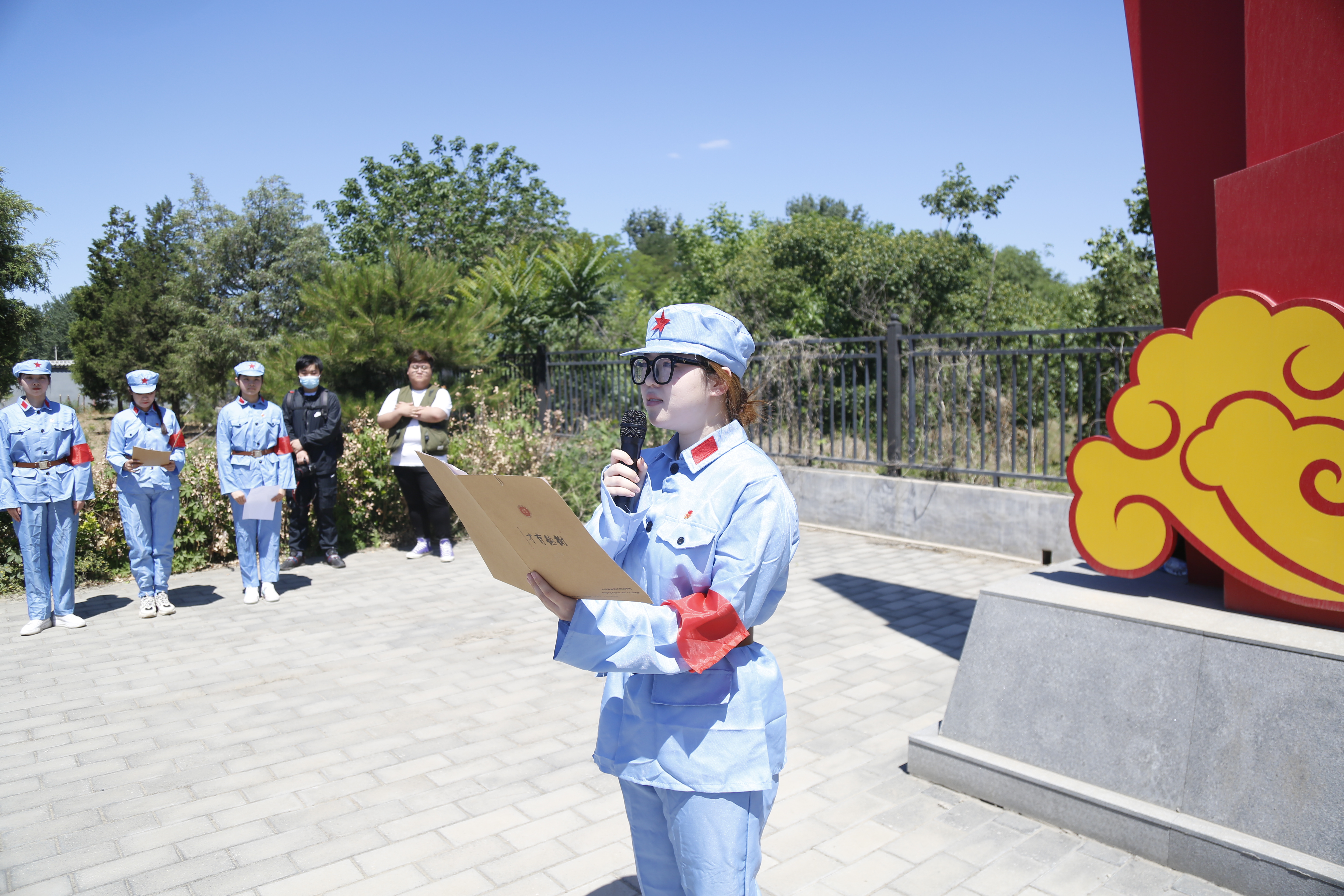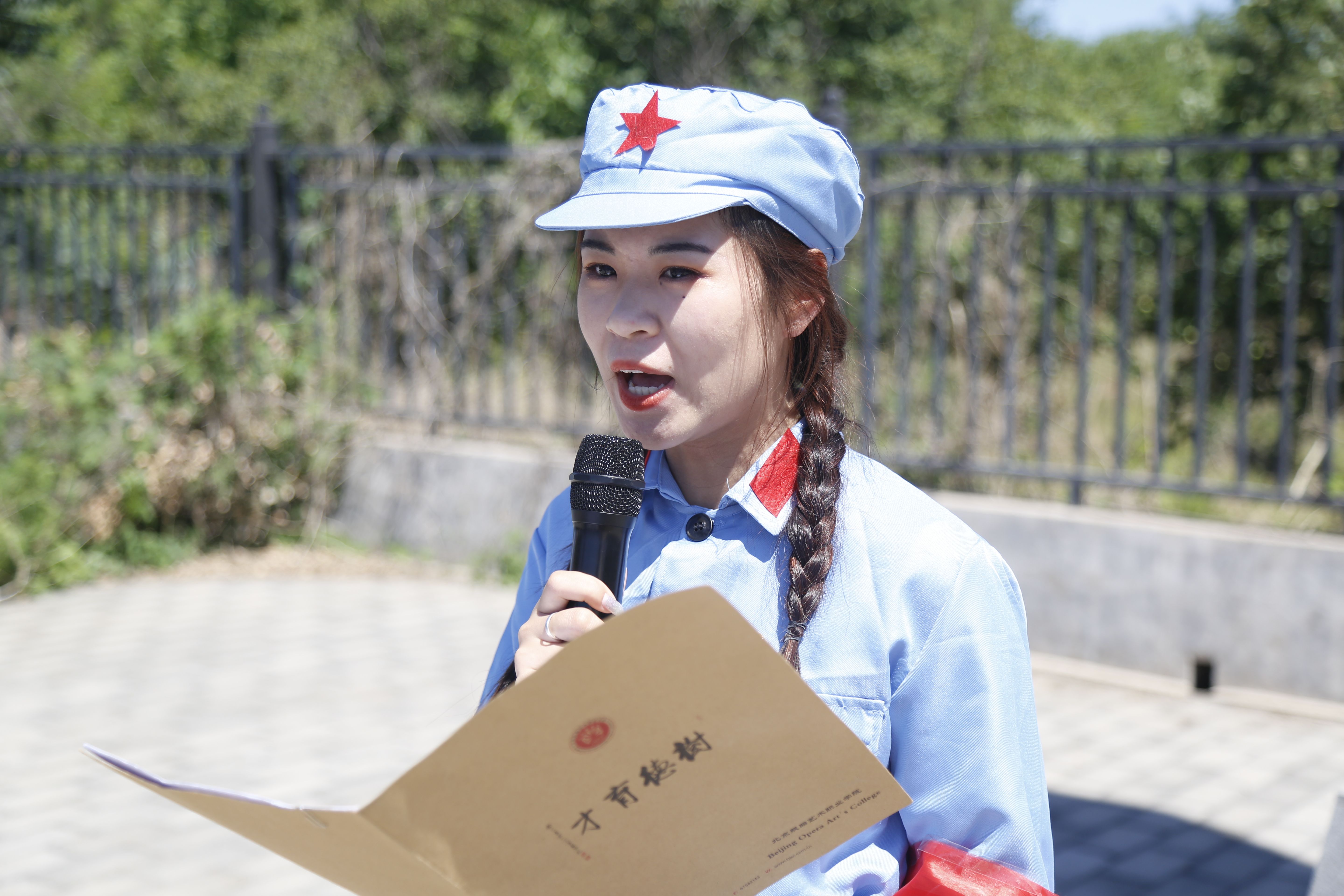 在纪念馆前,同学们齐唱国歌,聆听基地辅导员为大家深情讲述田载耕烈士的英勇事迹。中专音乐2017班高瑜遥作为团员代表带领新团员进行宣誓,老团员重温入团誓词。中专京表2018级团支部李木子同学和高职舞美设计2019级团支部书记韩清同学分别作为新团员和学生代表进行发言。