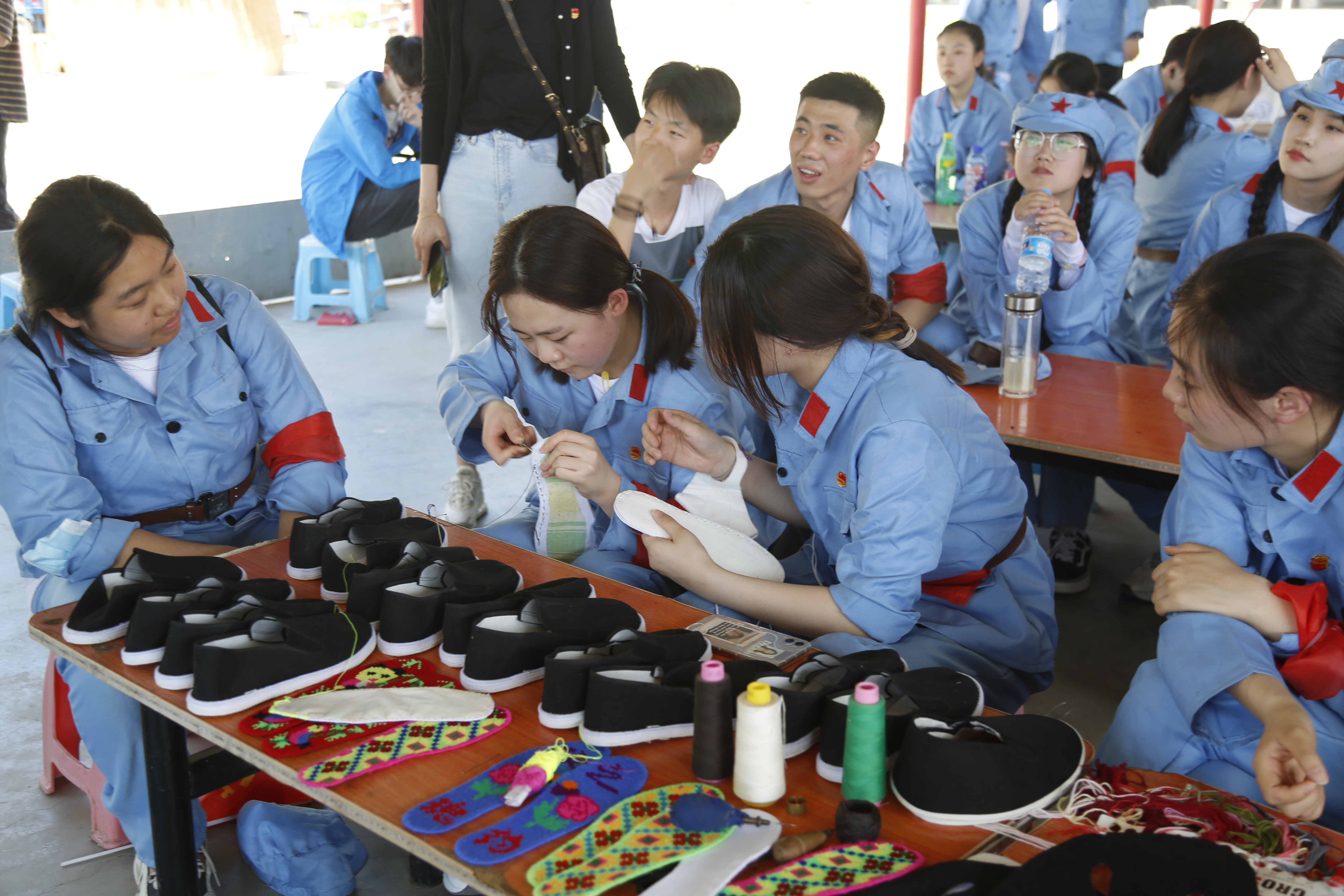 下午,同学们倾听军民红色故事宣讲,村内老党员为同学们讲述老一代革命红军“一不怕苦、二不怕死”的英勇事迹。体验“刺杀、独轮车运粮”等多项训练内容,参与军鞋制作过程,感受革命红军的艰苦奋斗精神。