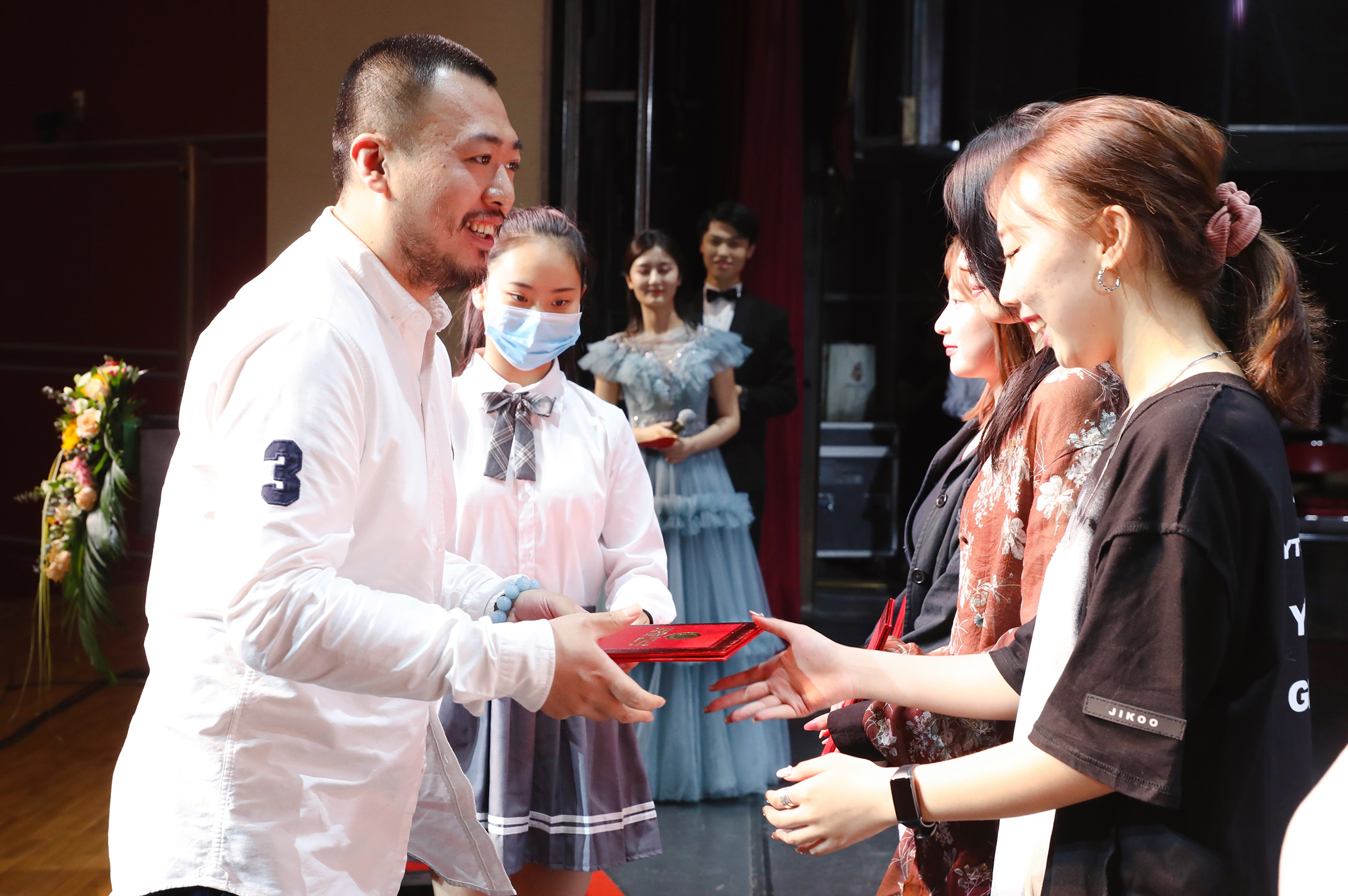 舞美系主任周亮老师为优秀毕业生颁发证书