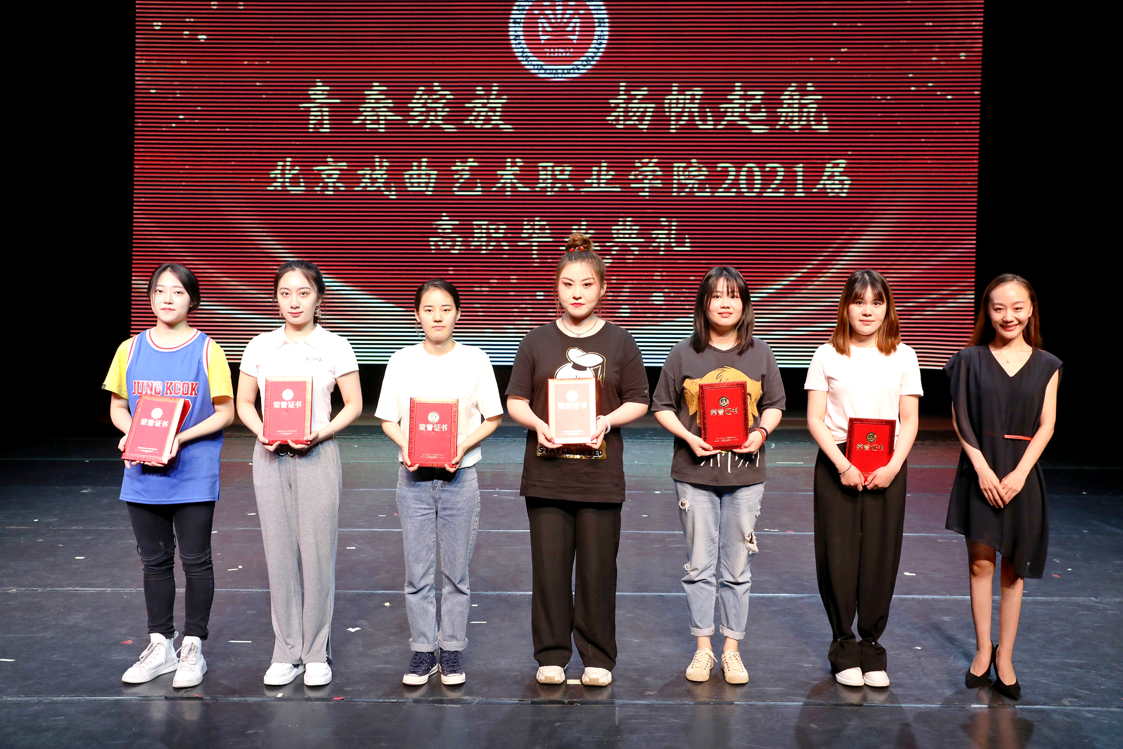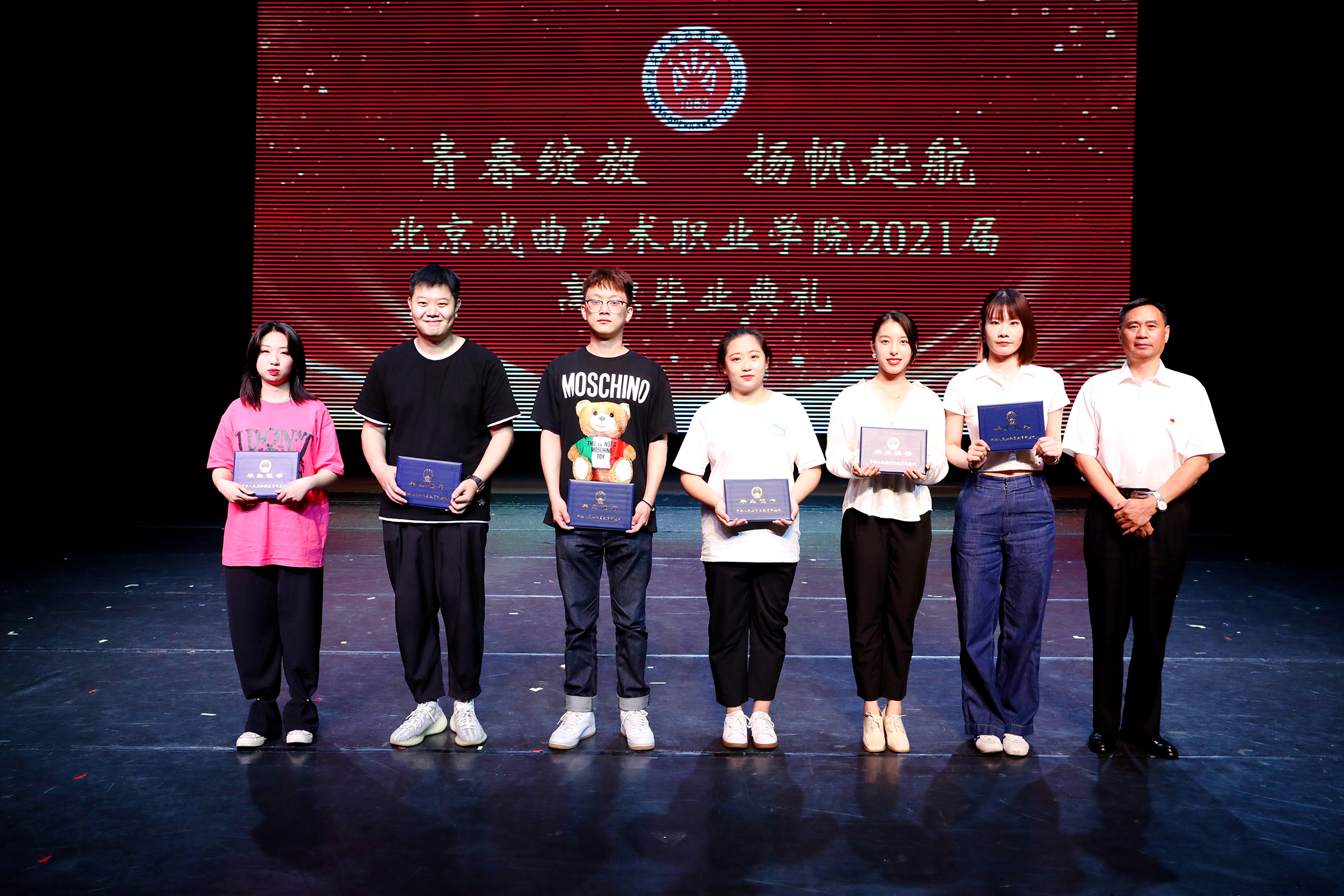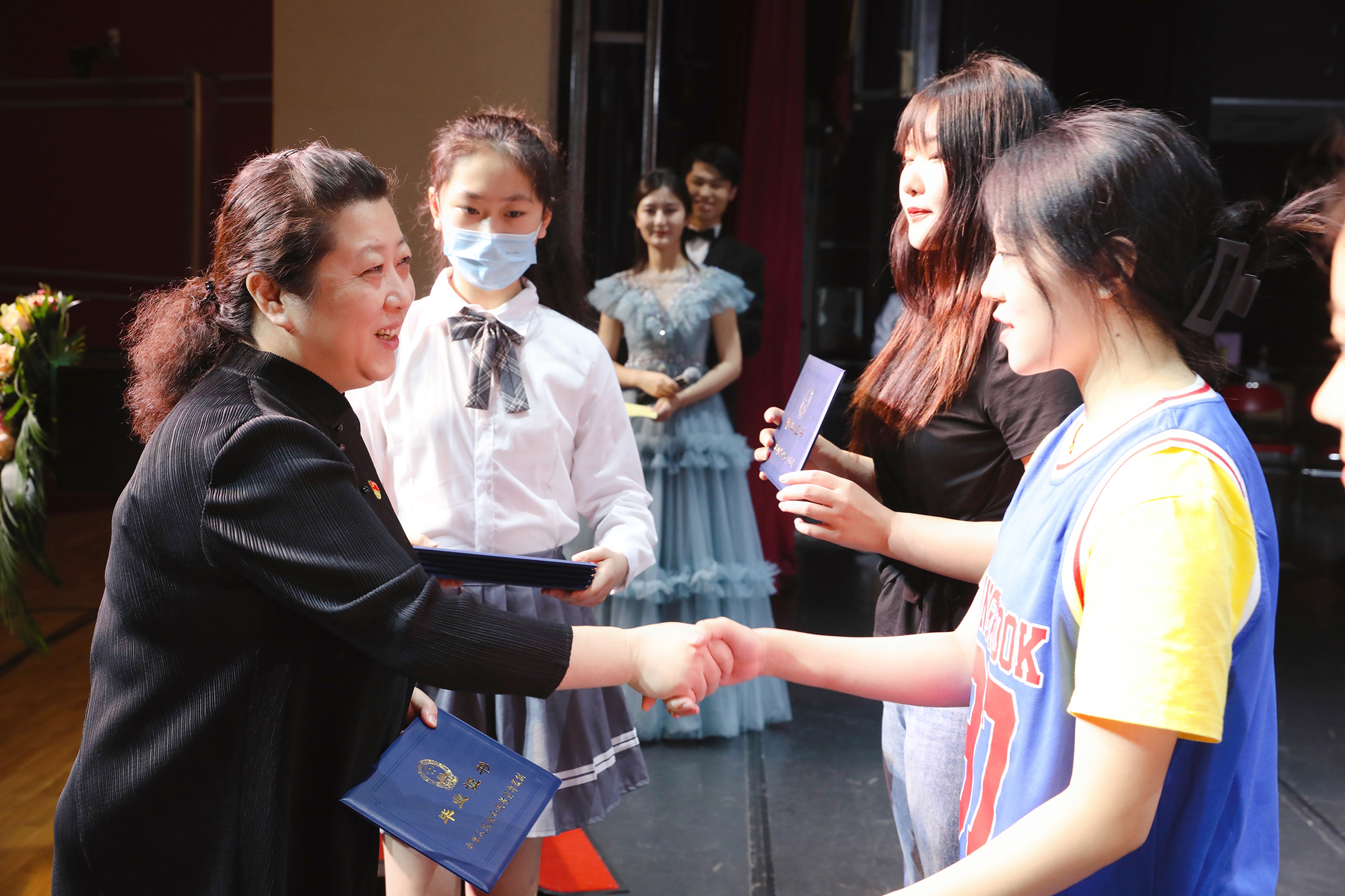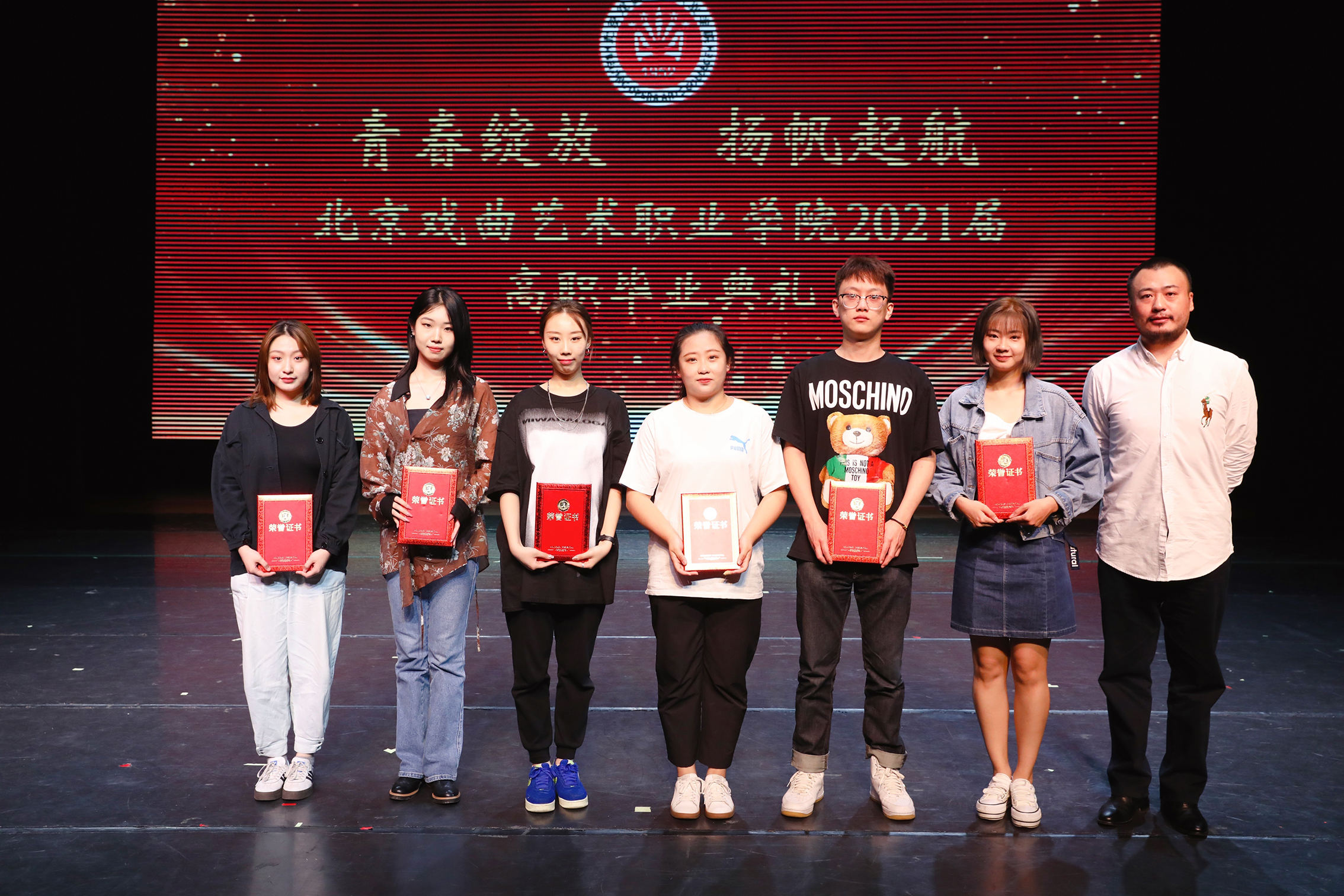 接下来,主持人宣读毕业生2020—2021学年比赛优胜奖名单及2021届高职优秀毕业生名单。各系部主任、副主任、负责人为优秀毕业生颁发证书;院长黄珊珊、副院长黄平分别为各系毕业生代表颁发毕业证,为同学们三年的北戏学习划上了圆满的句号。