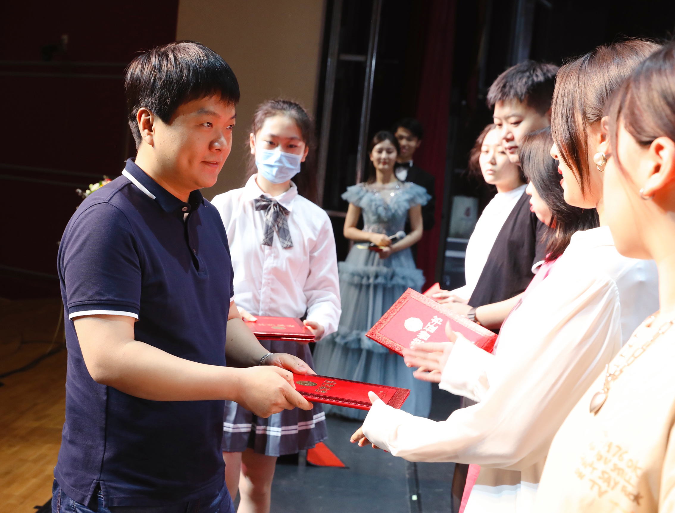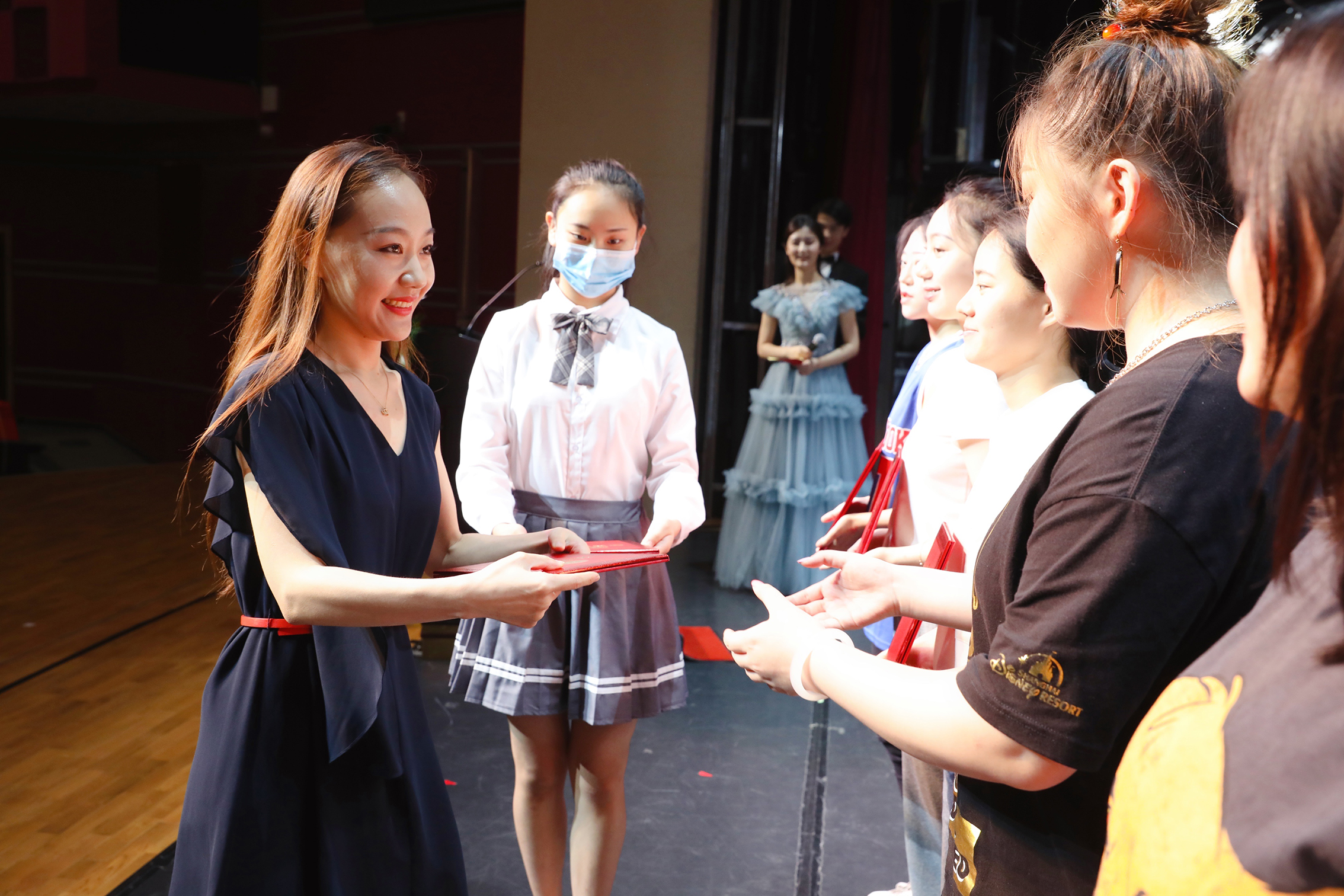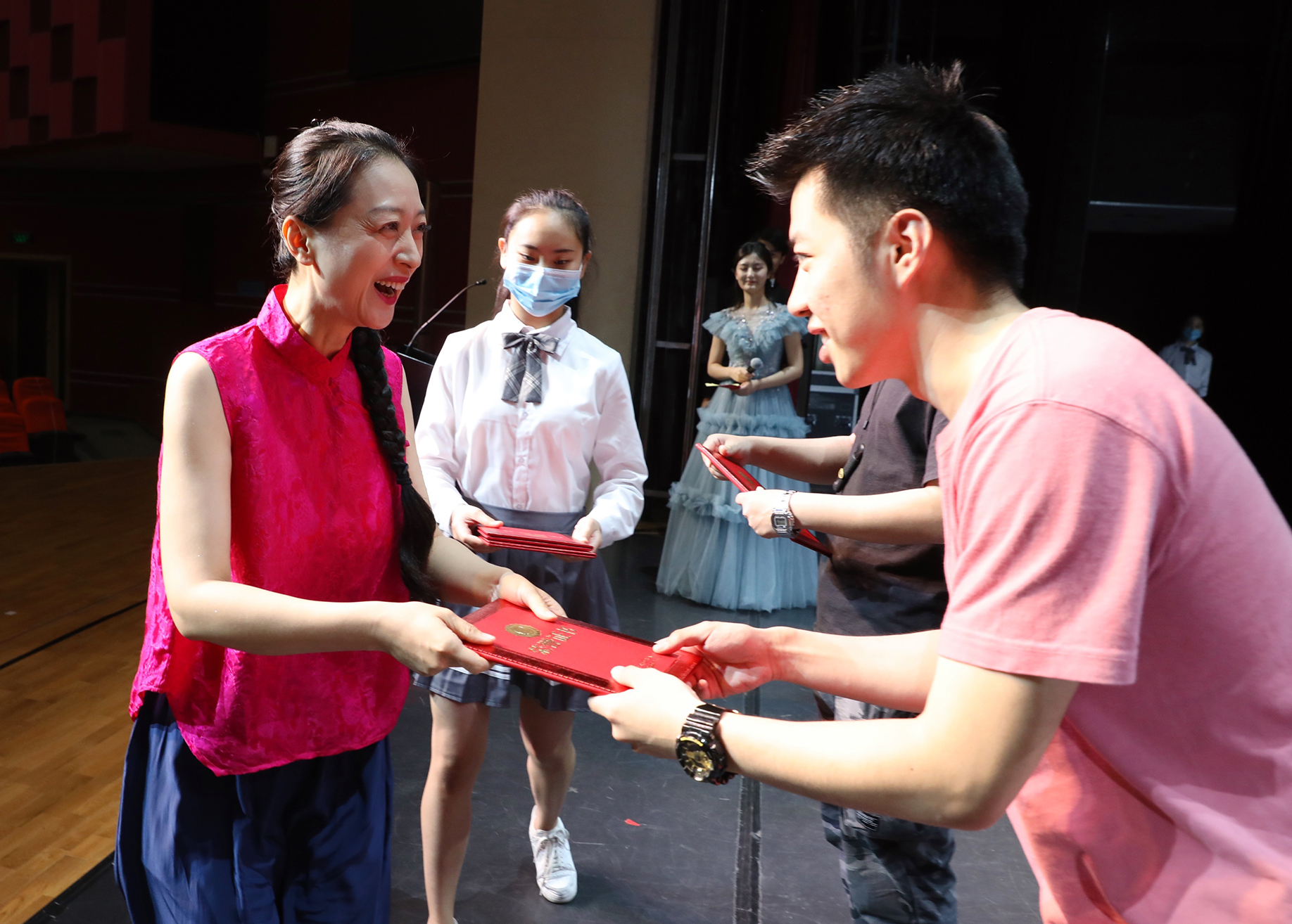 曲艺系主任张怡老师为优秀毕业生颁发证书