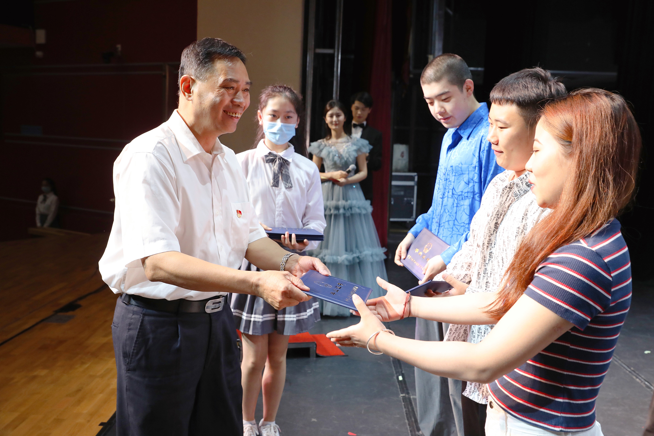 地方戏曲系主任王翀老师为优秀毕业生颁发证书