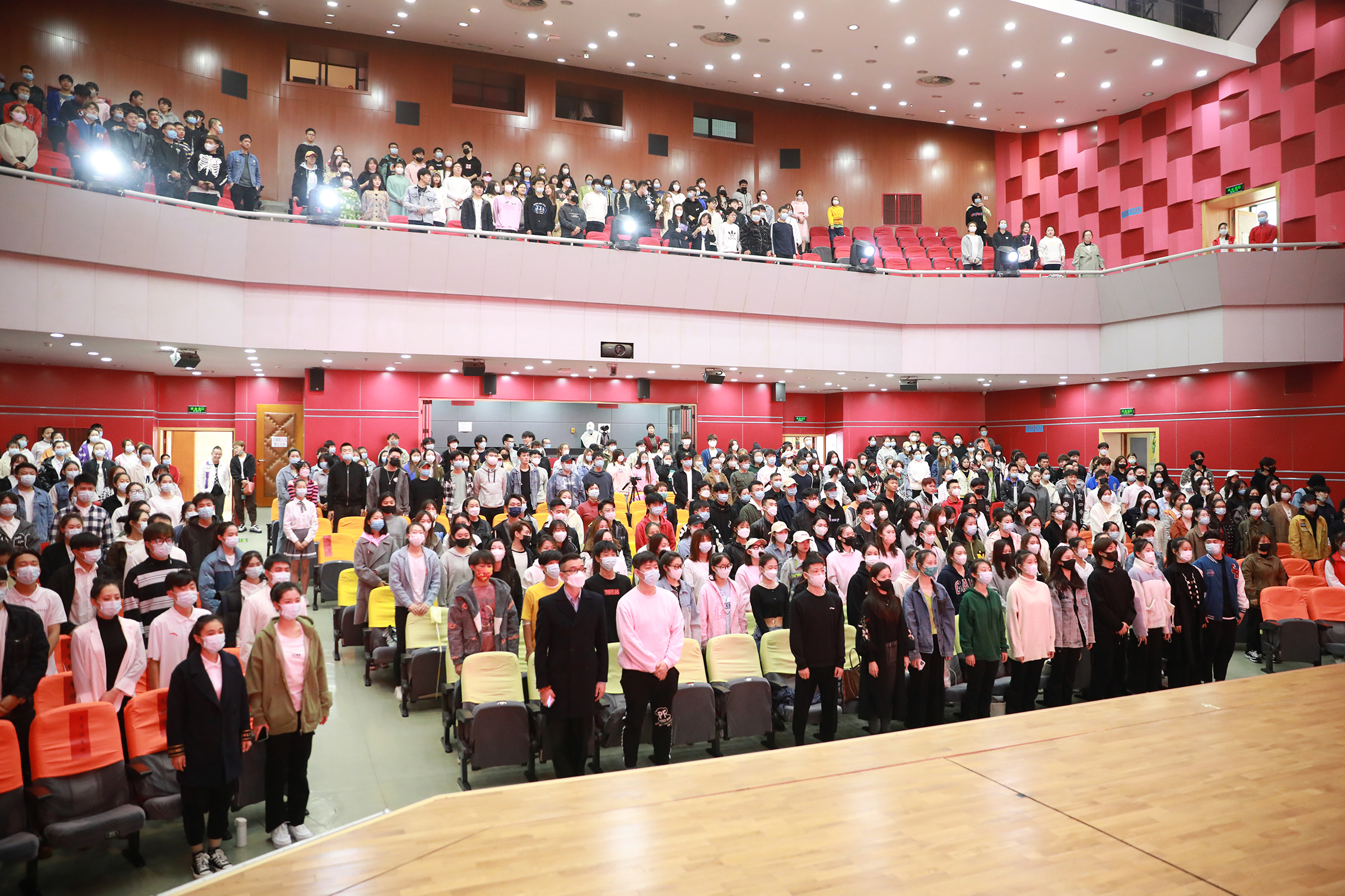 2021年10月11日上午10:30,我院在少儿戏剧场一层隆重举行2021—2022学年度第一学期高职开学典礼。学院党委书记毕兆炜,院长黄珊珊,党委副书记黄平,副院长吴蕾,副院长许翠,各系部主任、辅导员、班主任、学生处全体人员及460余名新、老高职学生出席典礼。典礼由学生处负责人副主任李洋主持。