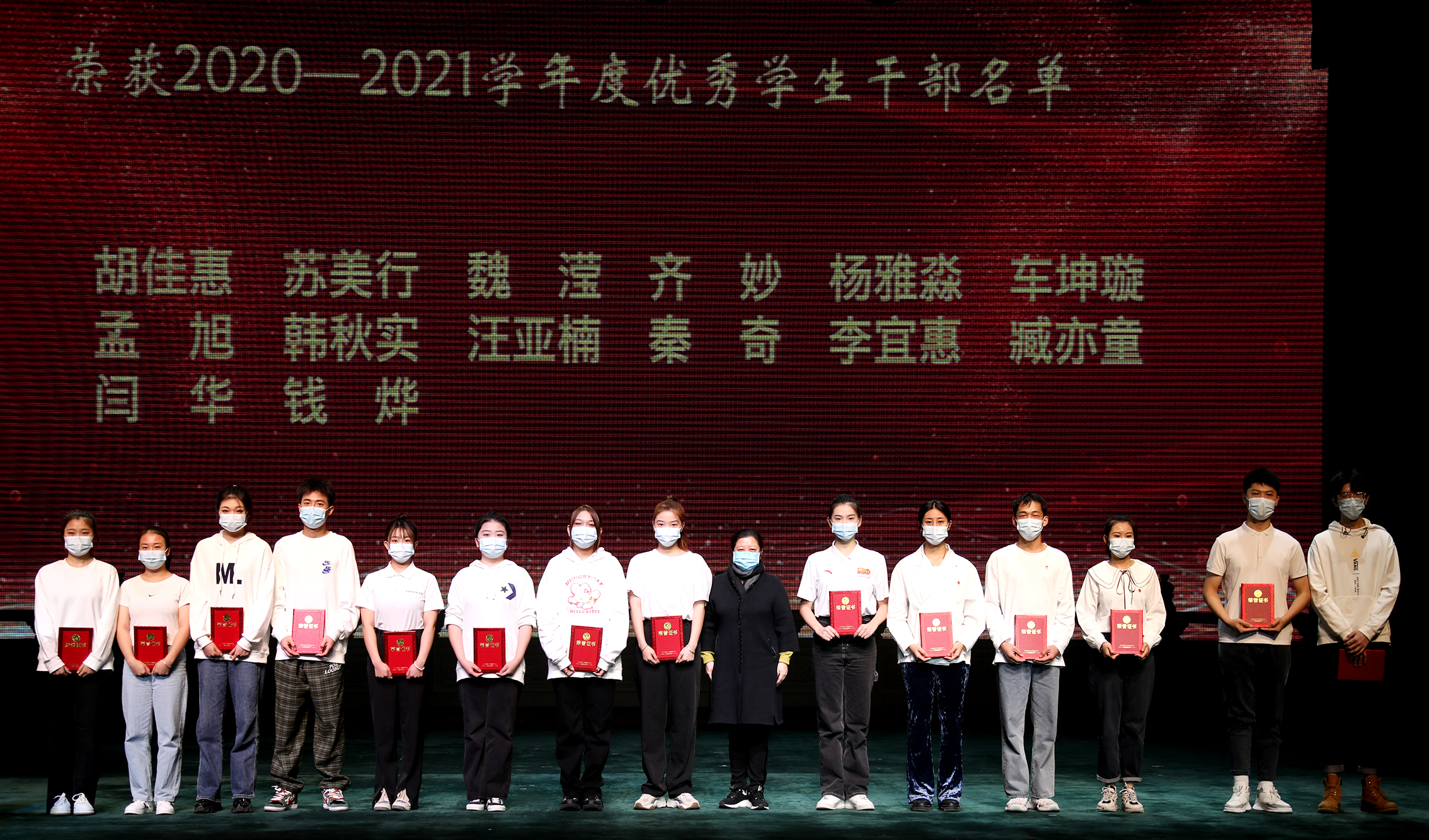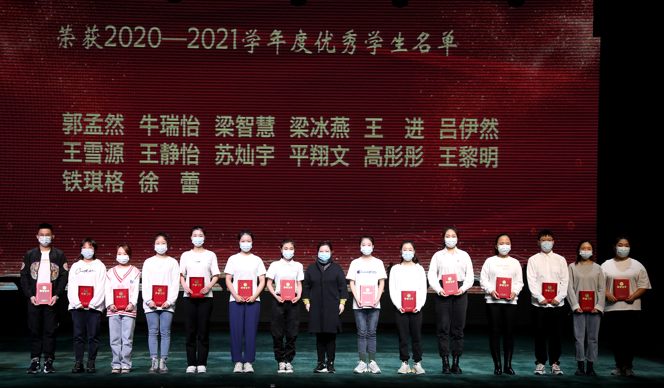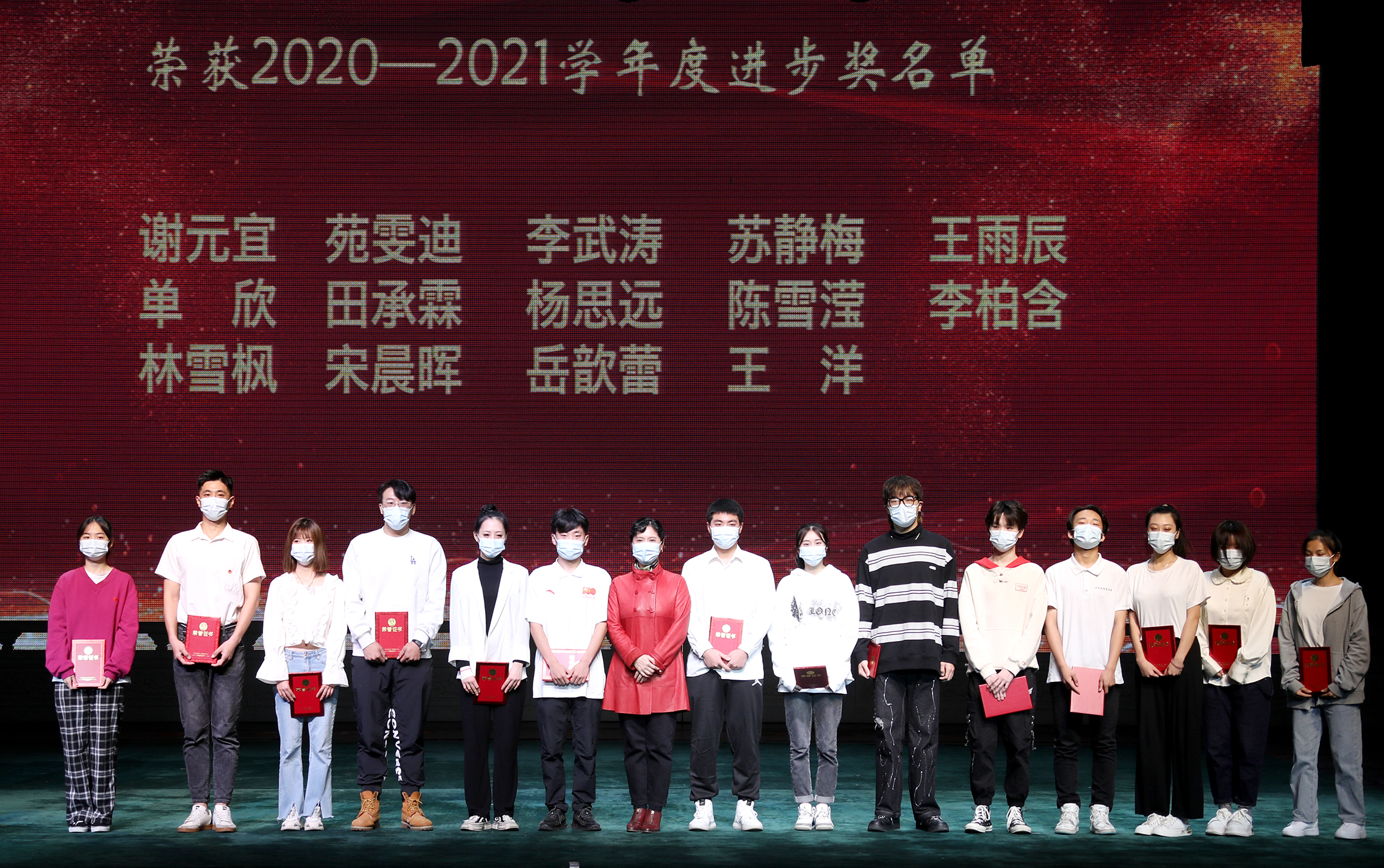 接下来,由学生处负责人副主任李洋老师宣布荣获2020—2021学年度进步奖、文化学习优胜奖、专业学习优胜奖、优秀团干部、优秀团员、优秀学生干部、优秀学生、先进团支部、优秀班集体、各类专业比赛、及创业比赛获奖决定,并由副院长许翠、吴蕾、党委副书记黄平、院长黄珊珊、党委书记毕兆炜分别为获奖的学生和班级体颁奖,表彰他们取得的优异成绩,期望同学们在新学期再接再厉,取得更大进步。