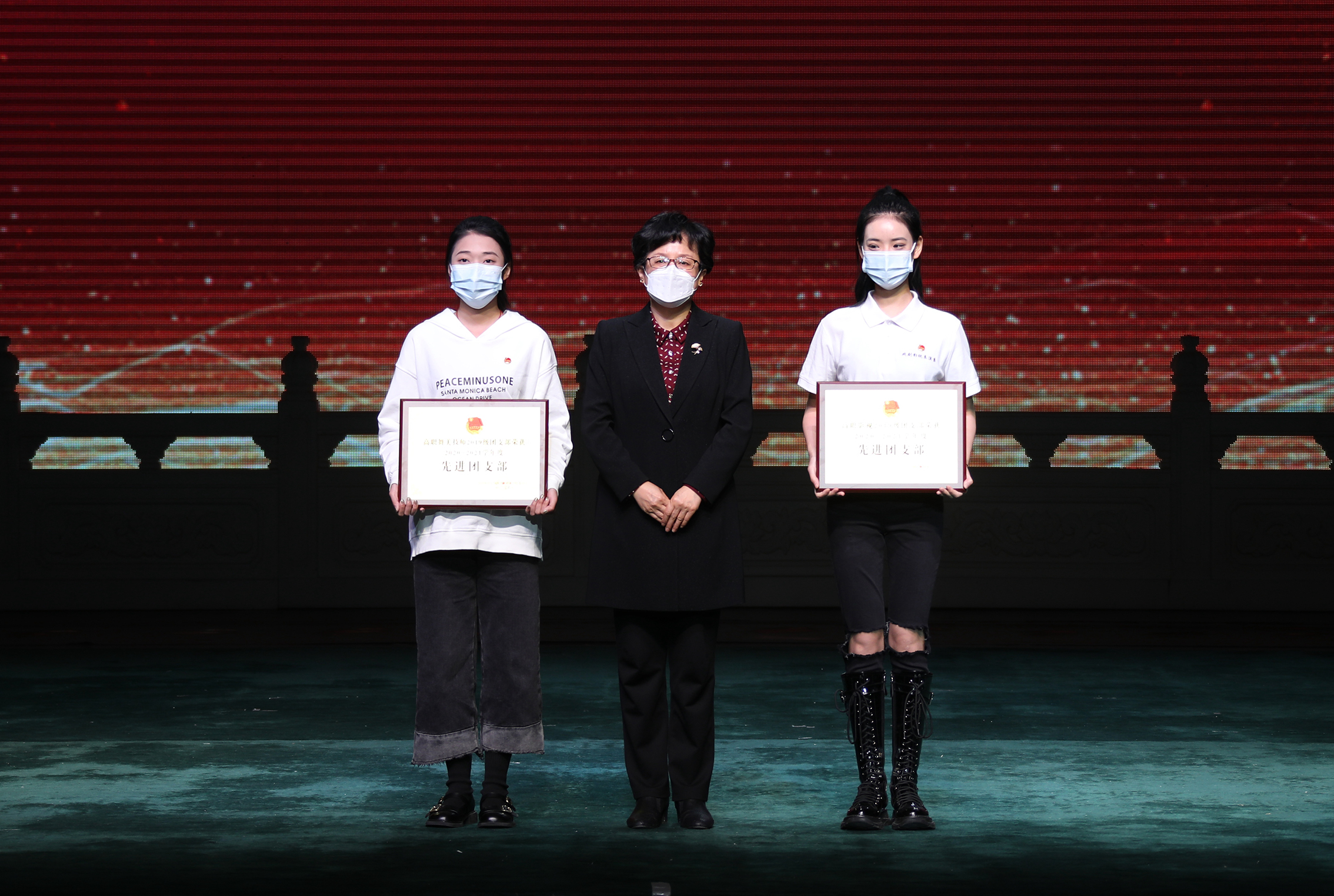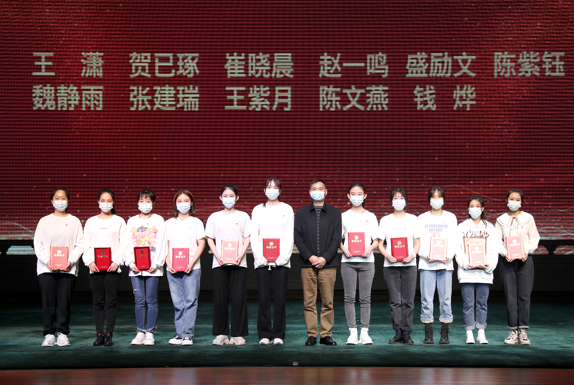 党委书记毕兆炜与荣获“先进团支部”的支部书记合影