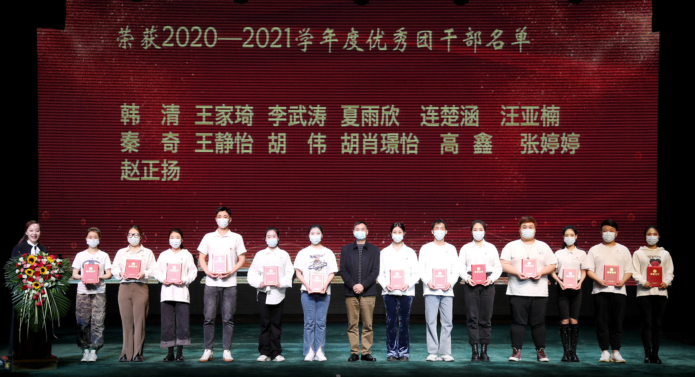 党委副书记黄平与荣获“优秀团干部”的学生合影