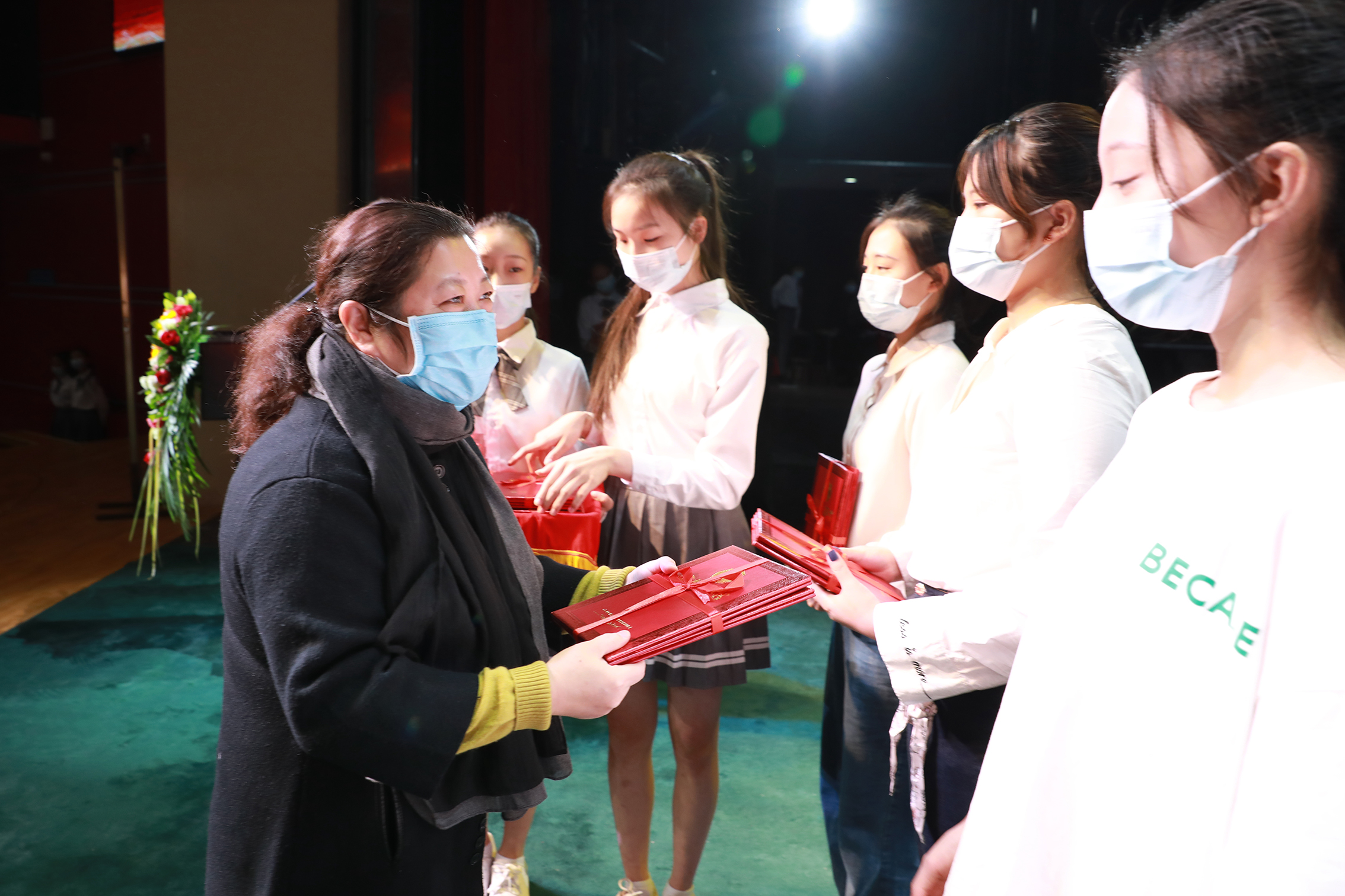 副院长吴蕾为文化学习优胜奖、专业学习优胜奖获奖学生代表颁奖