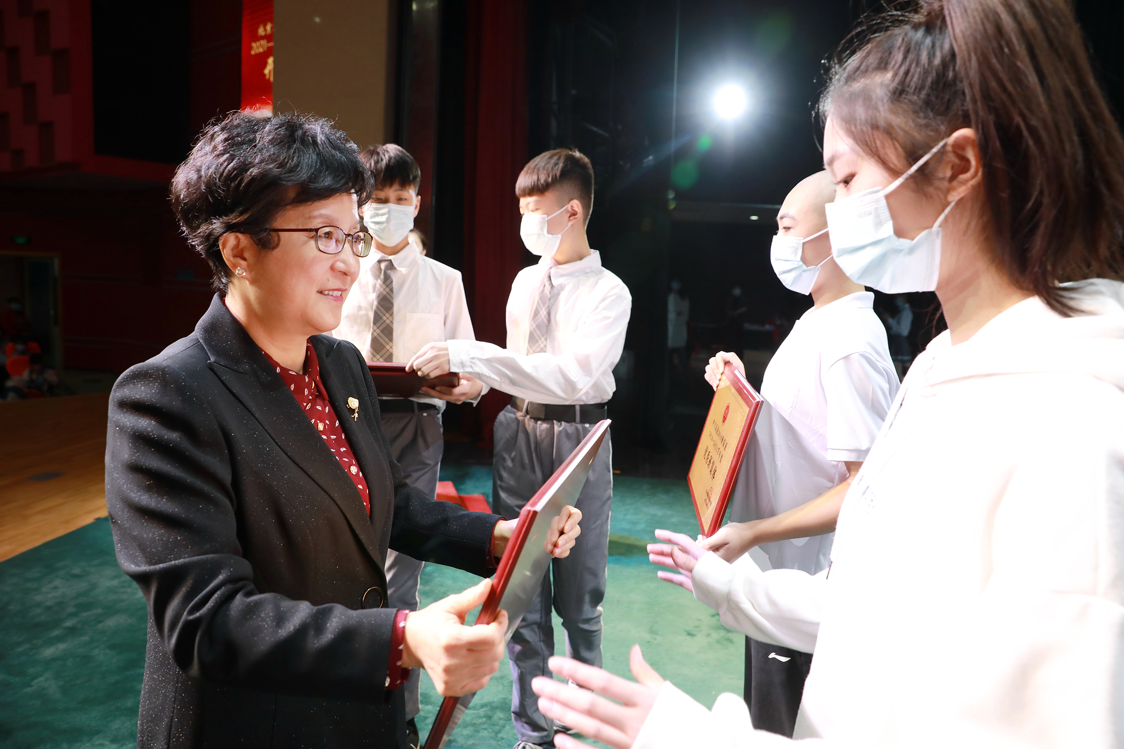 2020-2021学年度,在全院师生的共同努力下,我院涌现出了一批好学上进、成绩优秀、专业过硬的学生。为表彰先进,树立典型,营造良好的校风、班风和学风,我院评选出2020-2021学年度进步奖36名、文化学习优胜奖33名、专业学习优胜奖35名、优秀团干部10名、优秀团员9名、优秀学生37名、优秀学生干部37名、优秀班集体4个、先进团支部4个。学院领导分别为获奖学生代表颁发荣誉证书和奖牌,并向他们表示祝贺。此外,李洋副主任还宣读了56名在全国各类专业比赛中获得奖项的学生名单。