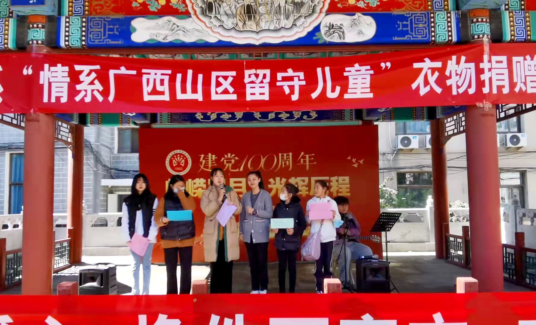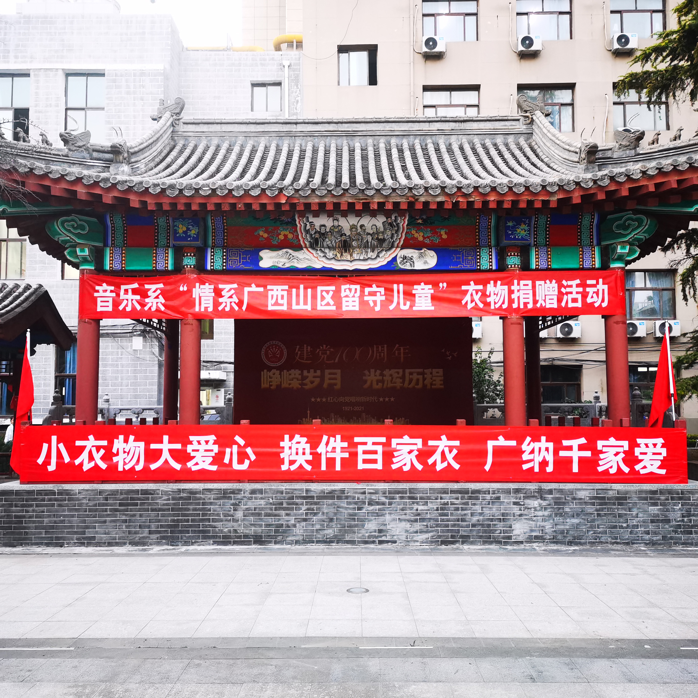 “小衣物大爱心,换件百家衣,广纳千家爱”。2021年10月19日中午11:30,北京戏曲艺术职业学院音乐系在国粹苑圆满举办了“情系广西山区留守儿童”爱心衣物捐赠活动 。此次活动由音乐系牵头并发起,在学院团委的领导下开展,旨在为广西省巴马瑶族自治县东山乡江团小学的留守儿童添上一件 “暖衣”,助力山区留守儿童度过一个“暖冬”。