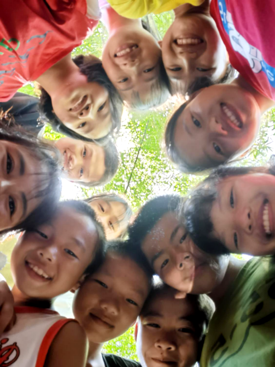 贫困山区的留守儿童们收到爱心衣物捐助后开心的合影