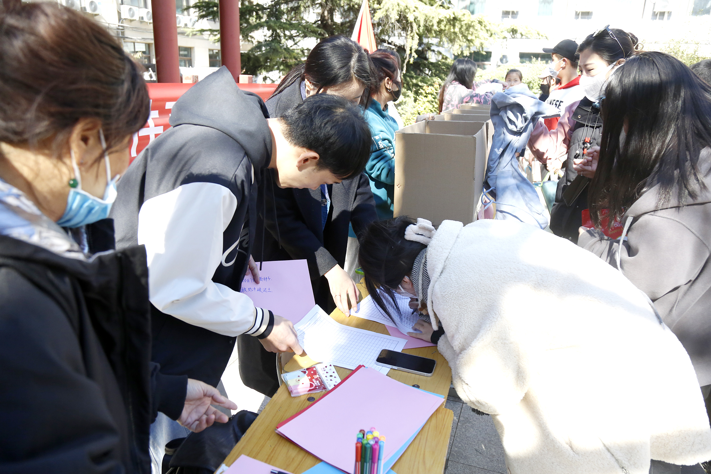 学院党委书记毕兆炜对此次的爱心衣物捐助活动给予了极高的评价与肯定,党委副书记黄平、团委书记唐晶晶、音乐系主任祝真伟、辅导员潘俊杰等老师也到达现场助力同学们的爱心义举。