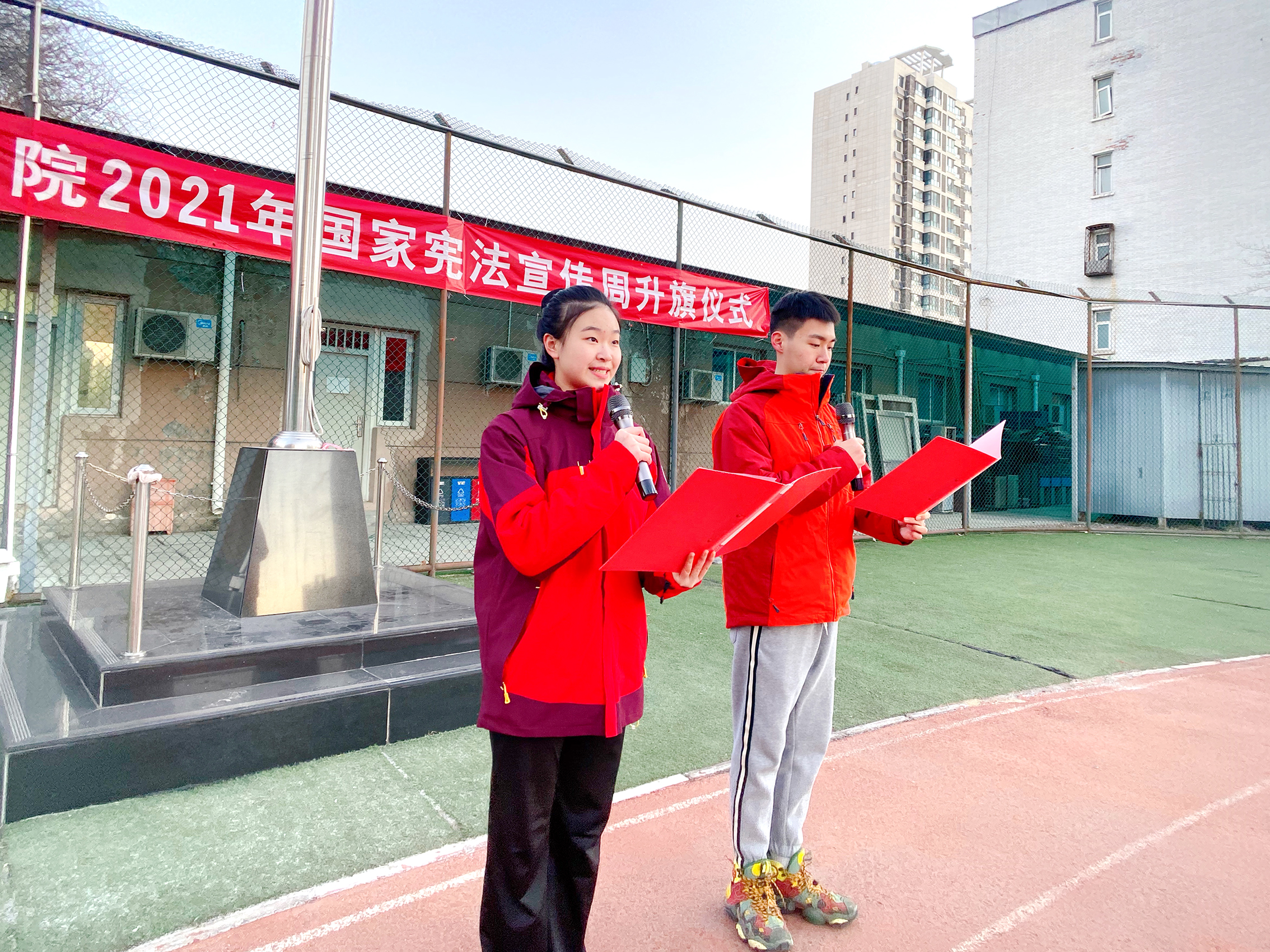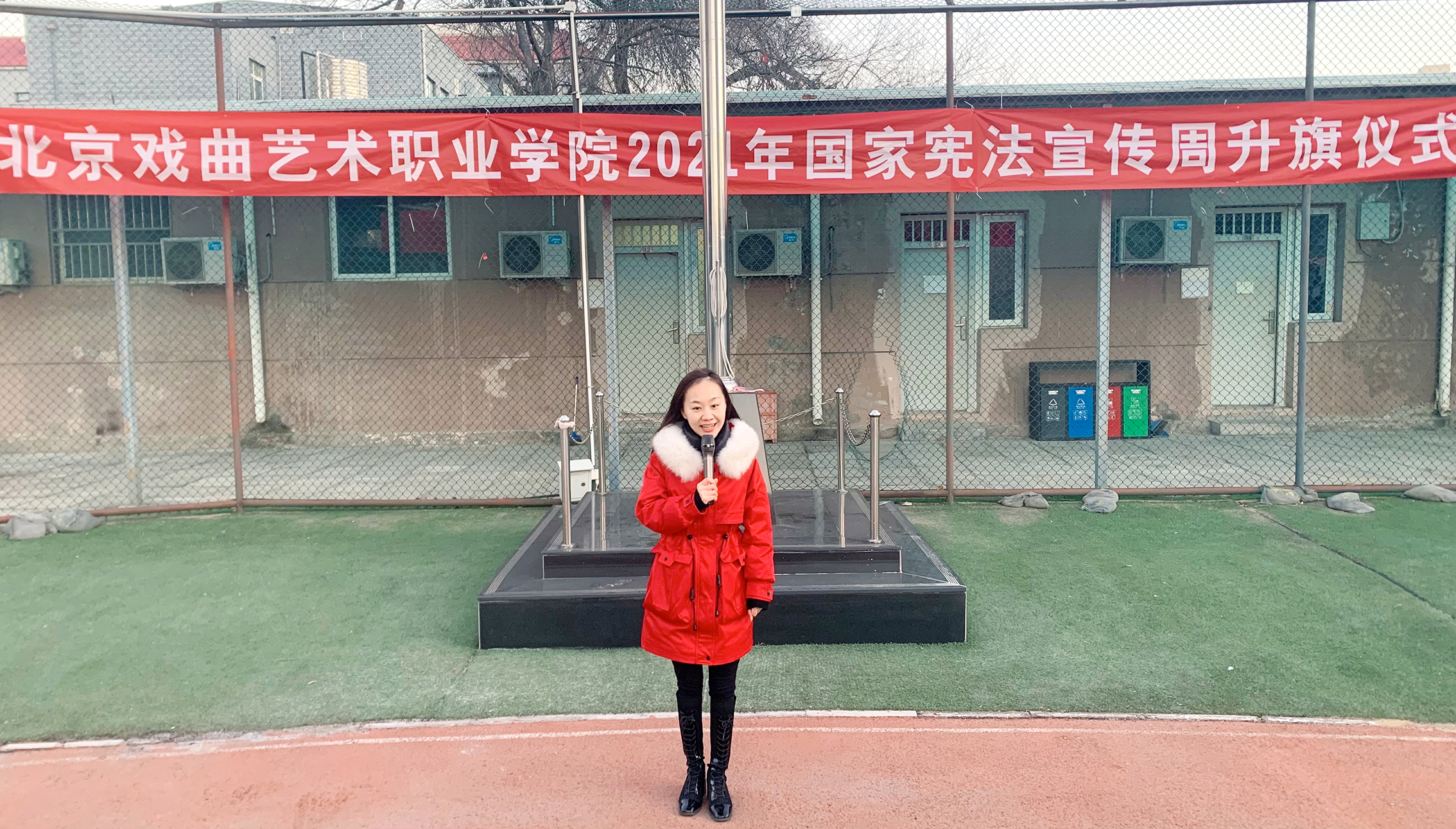 2021年12月4日是第八个宪法宣传日,也是第四个宪法宣传周,为认真学习贯彻习近平法治思想,深入贯彻落实党的十九大和十九届六中全会精神,学习宣传宪法,弘扬宪法精神,维护宪法权威。北京戏曲艺术职业学院于12月13日在操场举行宪法宣传主题教育活动暨升旗仪式。学院法制办公室(学院行政办公室)主任王静、学生处副主任李洋、各班主任和全体学生共同参加了此次活动。活动由学生处教师朱艳主持。