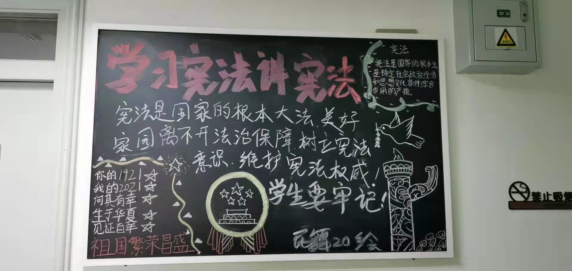 学院组织在校学生召开学习宪法主题班会。学院党委书记毕兆炜、法制办公室(学院行政办公室)主任王静及学生处副主任李洋分别入班与学生们交流。各班班主任老师积极准备,内容丰富多彩,以宪法诵读学习、知识竞答、绘制板报等方式开展,形式上回避了教条的说教,各班以实际出发,结合本专业充分发挥学生才艺,讲身边事,讨论焦点话题等,各班班会组织的有声有色。