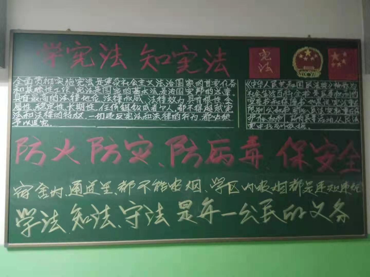 在学院宪法宣传月里,法制办公室(学院行政办公室)在校园内积极营造普法氛围,采用张贴宪法宣传主题海报、LED宣传标语滚动播放、校内板报、悬挂横幅等多种形式,路过师生纷纷驻足观看,起到了良好的宣传教育效果。