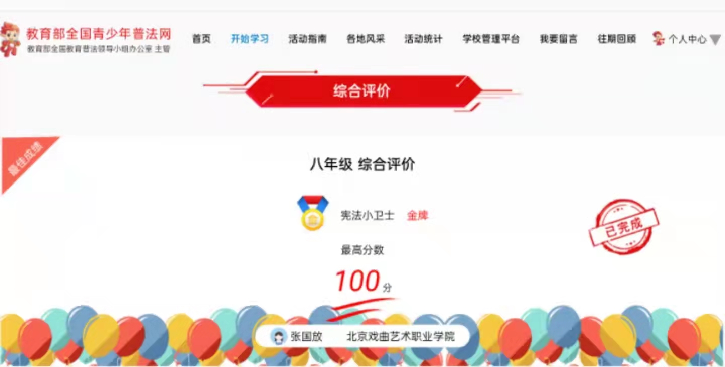 学院组织开展学生宪法与法治知识网络学习。在教育部全国青少年普法网和“青少年普法”小程序上进行学习练习、综合评价和法治实践。活动与大学生思政课紧密联系,通过引导学生积极参加“学宪法 讲宪法”网上学习和“宪法小卫士”行动计划,着力提升学习与考试参与率,实现了学习教育全覆盖。进一步提高了学生们的法律意识和法制观念,营造良好的校园法治文化学习氛围。