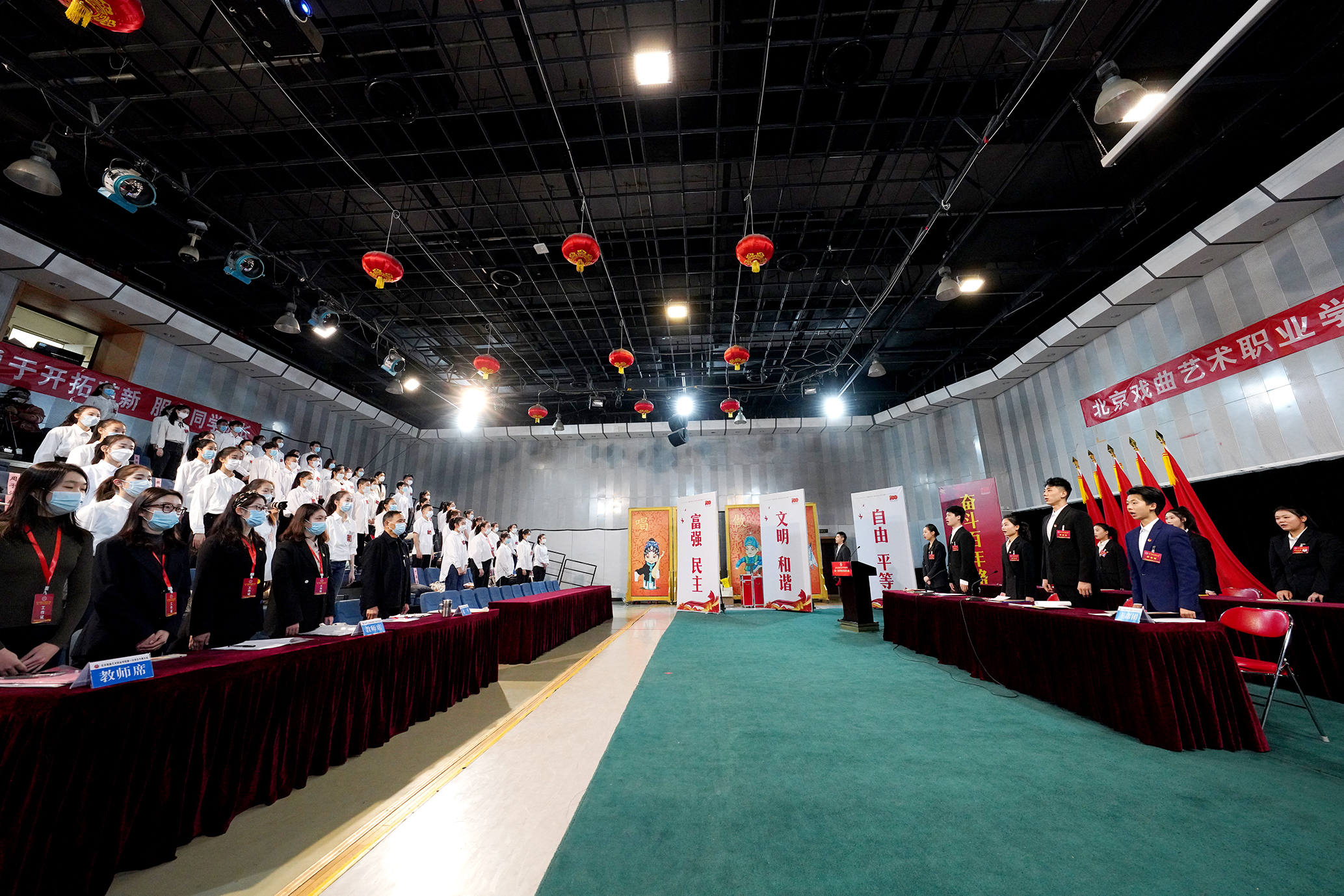 2021年12月19日,北京戏曲艺术职业学院第一次学生代表大会在少儿戏剧场四层召开,本次大会分预备会议、正式会议、分团会议。带着广大同学的期盼,全院85名学生代表参加会议。