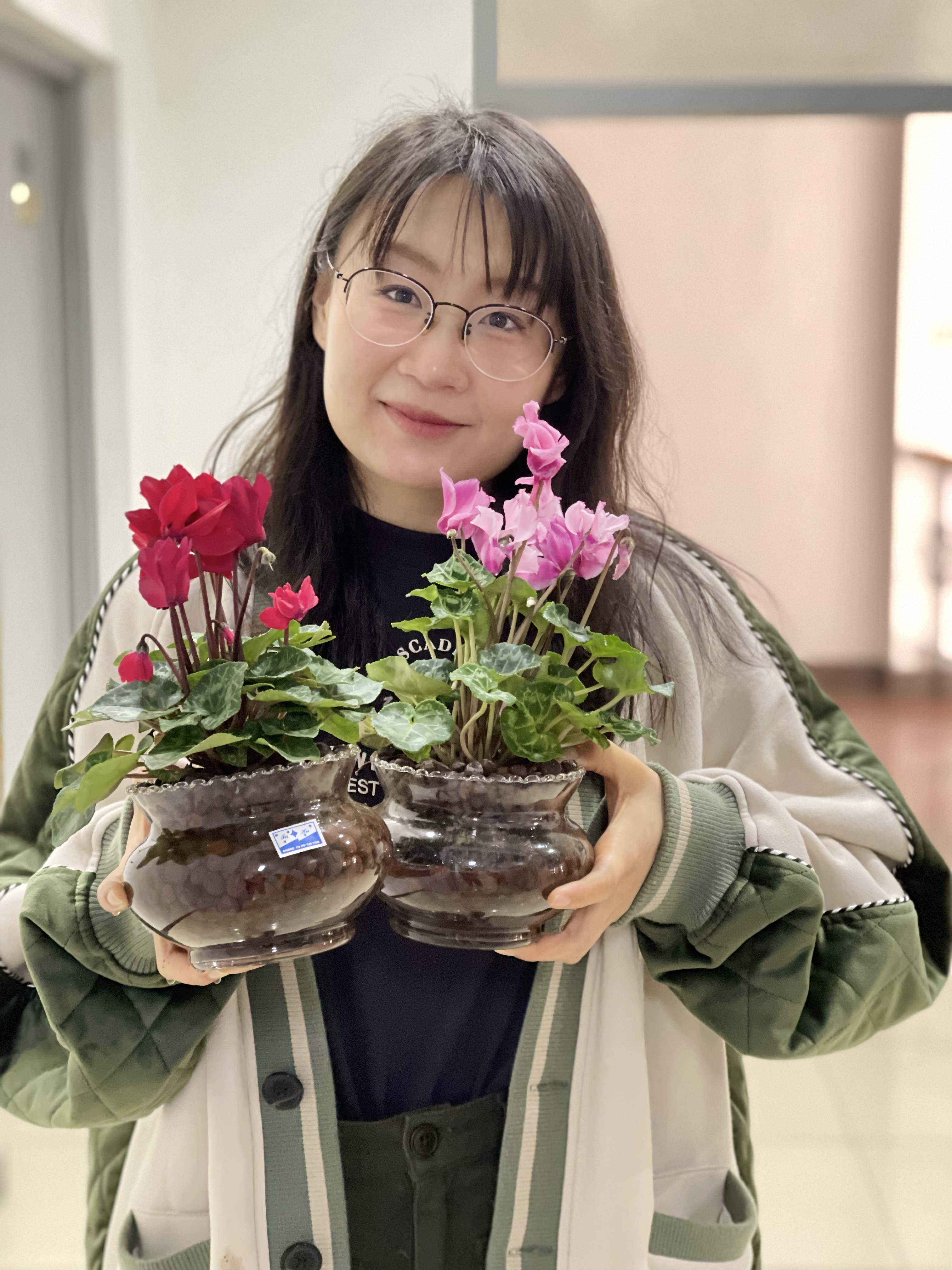 随后,学院工会为全体女教职员工送上第二份祝福,为她们所在的办公室送去精美的绿植。一盆盆妍丽的仙客来、淡雅的长寿花包含着满满的祝福送给每位美丽的女性,既装扮了环境,也装点了春天。