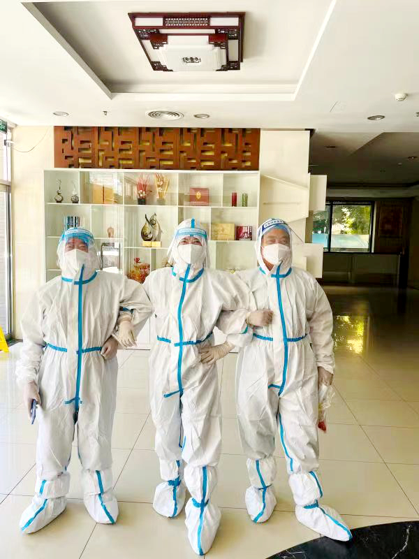 疫情就是命令,5月24日,党员刘小青在接到马上返校开展全员核酸检测的通知后,就立即到校组织并亲自开展校内核酸检测工作。她说:“我看到那么多的医护人员、志愿者奋斗在抗疫一线,不喊苦,不说累,这种精神一直鼓舞着我,作为一名共产党员、一名曾经的部队医务工作者,我更应该起带头作用,在关键时刻返校参加核酸检测工作。”经过数小时的沟通、准备,一支由学院综合管理处副主任刘小青、保安队长杨正雄、保安祁会民组成的核酸采样队伍全员到岗。5月25日,按照既定时间有序开展校内人员采样工作。