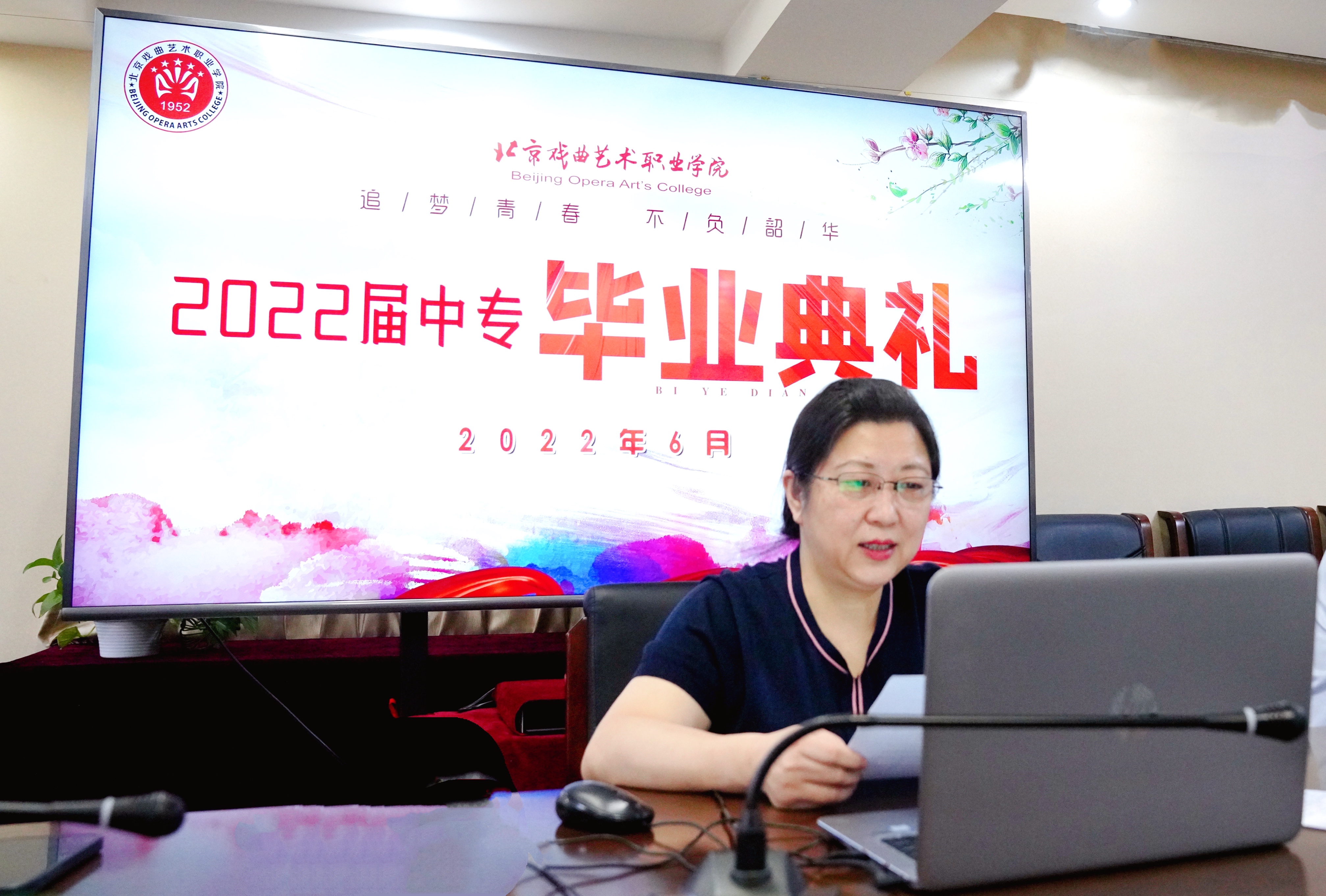 院长黄珊珊为全体2022届中专毕业生致毕业寄语。她代表学院向在北戏圆满完成中专学业的同学们表示最热烈的祝贺,向辛勤培养同学们健康成长的老师们致以最崇高的敬意。回首往昔,校园处处留下了同学们拼搏奋斗的足迹和青春靓丽的身影,看着同学们一天天成长,倍感欣慰,伴随不舍,在即将扬帆远航之时,希望同学们做一个在艺术上有追求的人,做一个感恩的人,北戏是你们的家,希望未来北戏能以你们为荣。