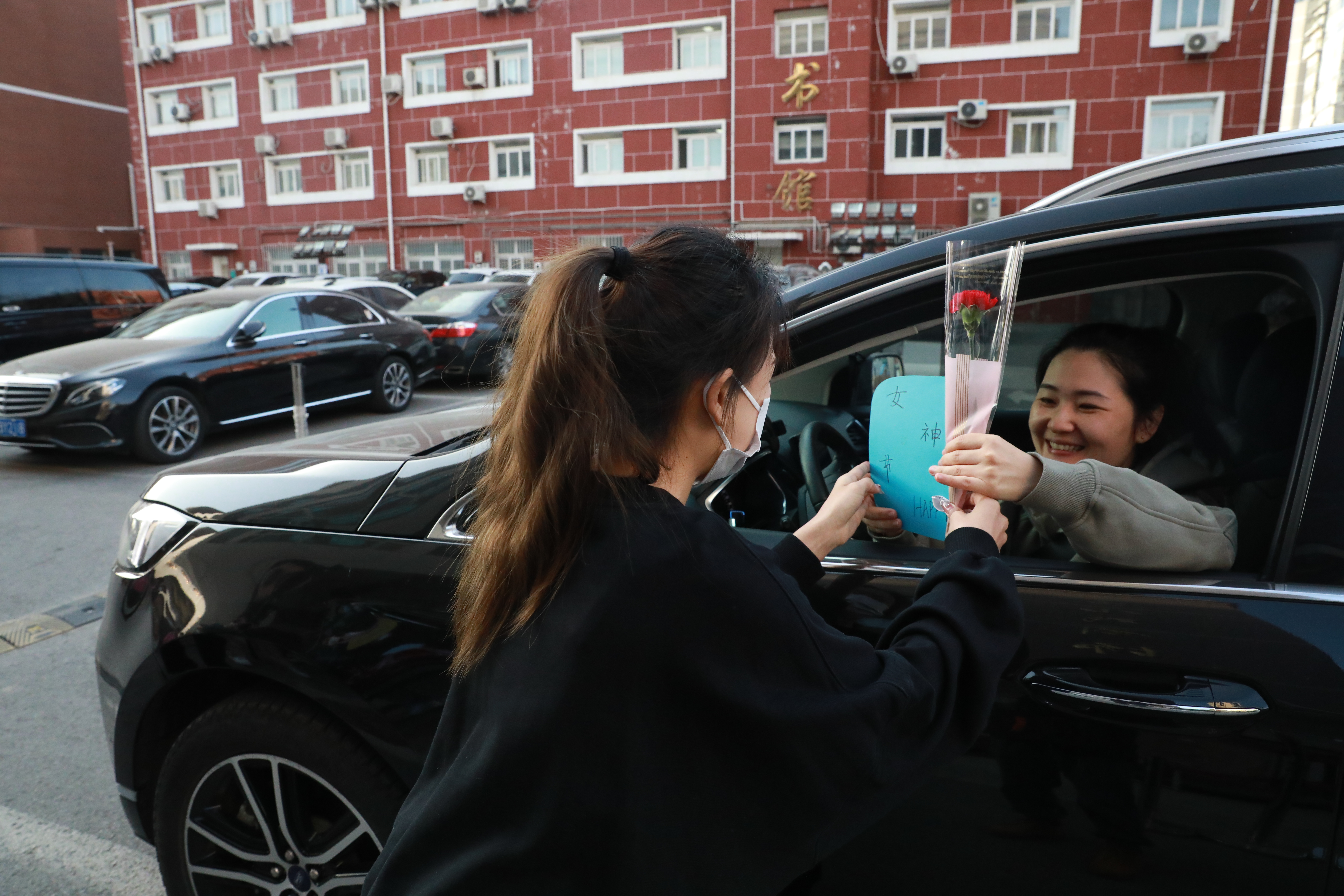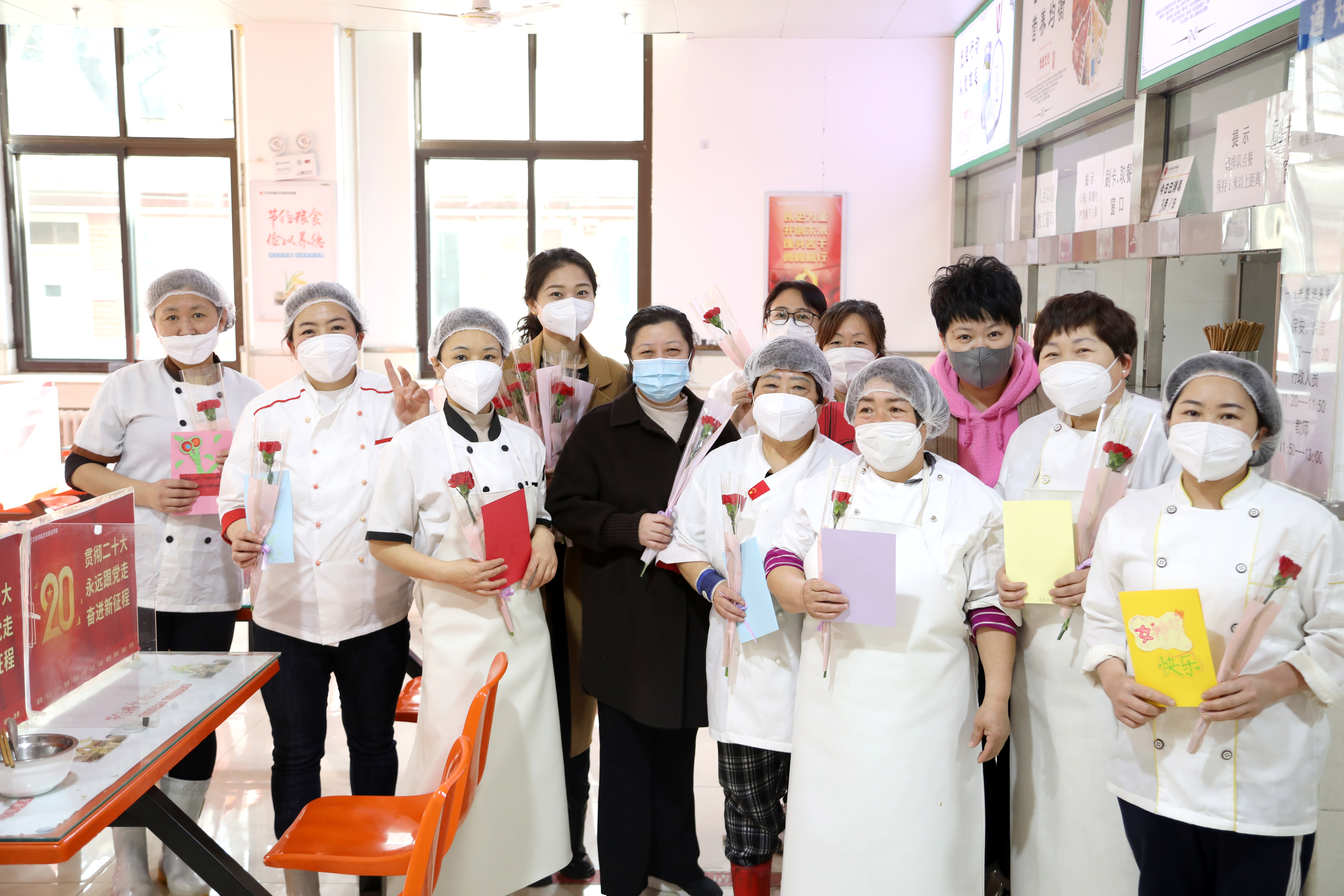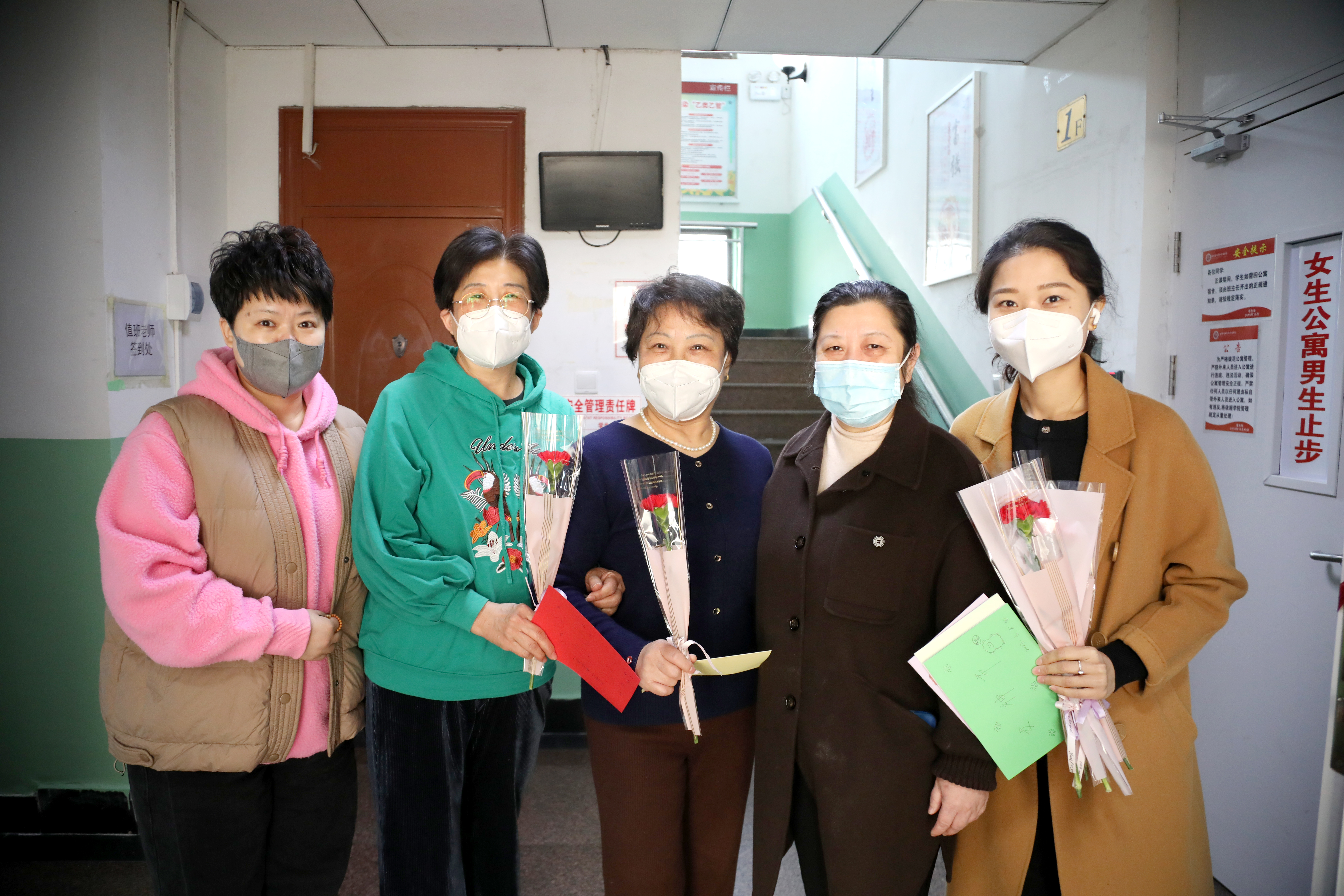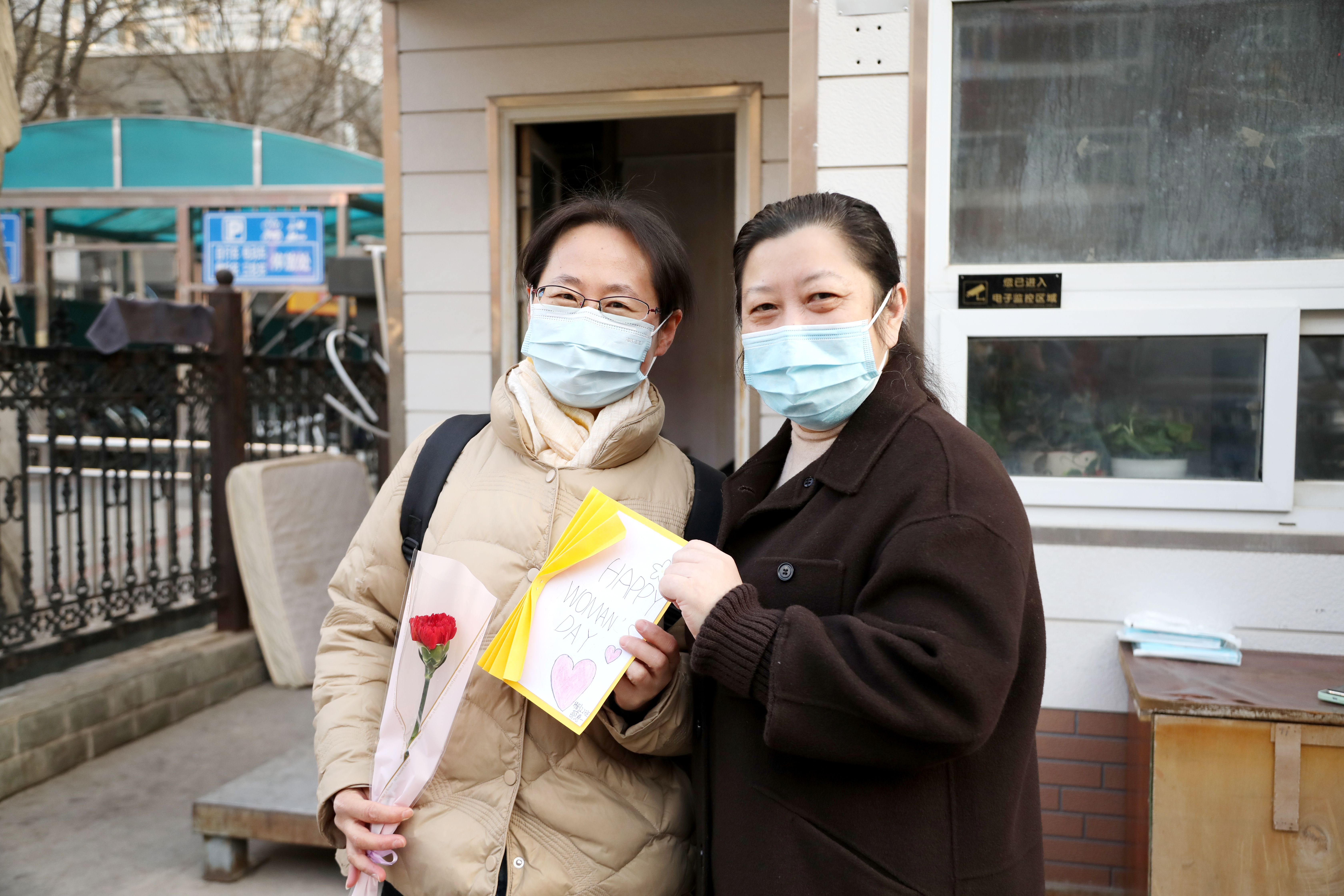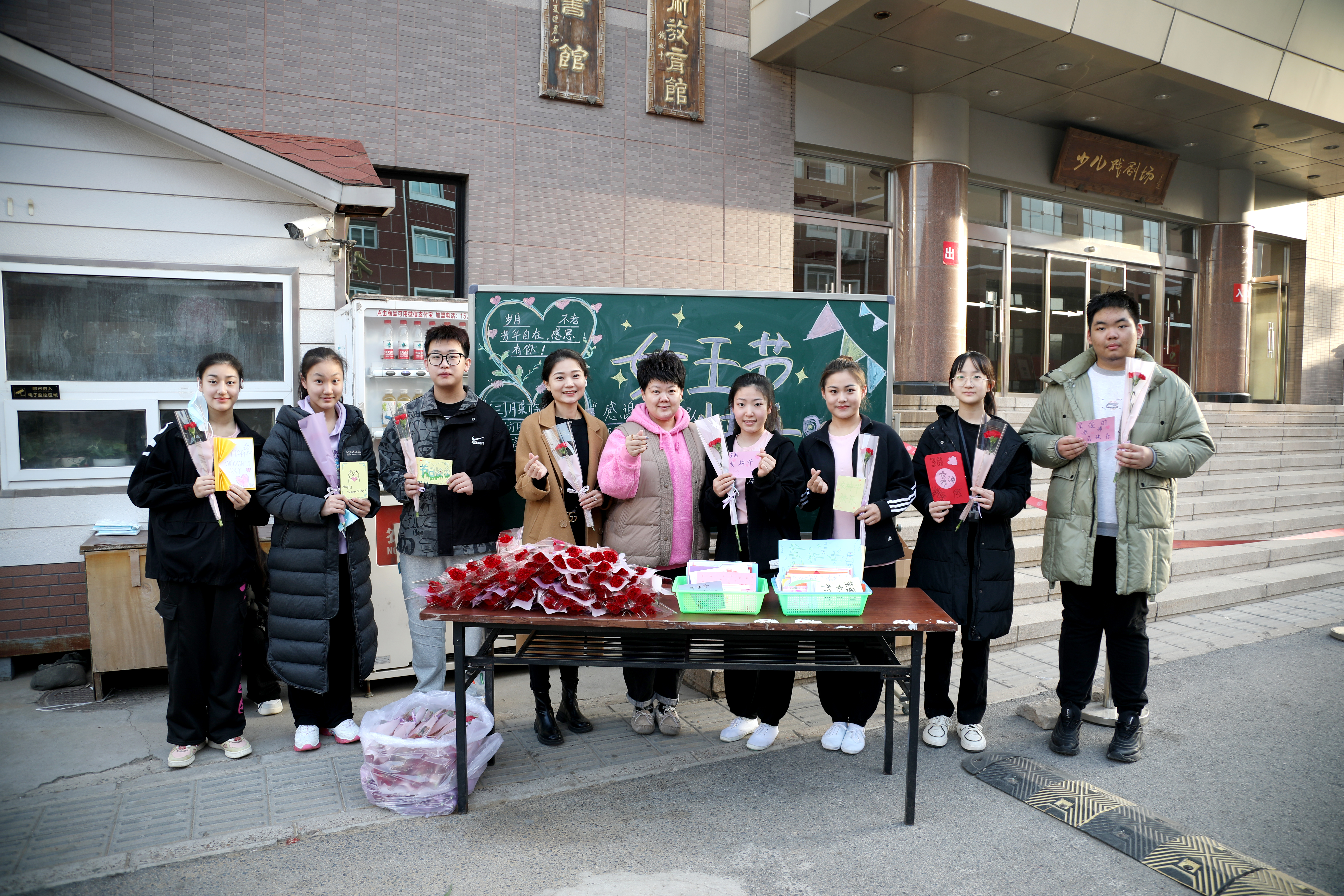 3月8日8点,学院党委书记黄珊珊,工会委员王静、陈明,团委书记唐晶晶和学生志愿者一起在学院门口迎候前来上班的女老师,为她们送上一束带着晨露的康乃馨和一张孩子们亲手绘制的手工贺卡,祝福大家节日快乐,感谢她们为学院的辛勤工作与无私付出。