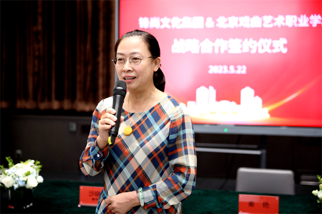 沙晓岚董事长对北京戏曲艺术职业学院一行的到来表示热烈欢迎。他认为北京戏曲艺术职业学院是一所历史悠久、在全国戏曲艺术教育领域有着广泛影响的艺术院校,希望双方能以此次签约为契机,在人才培养引进、实习实训基地建设、毕业生就业、品牌建设、艺术创作、国际交流等方面加强深入合作,共谋未来发展新篇章。