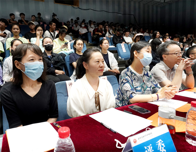 诗词讲解环节共有来自4个专业系的5名高职同学参加,分别讲解了《声声慢》、《诗经•蒹葭》、《离骚》、《临江仙.夜归临皋》、《行路难.其一》等古典诗词。同学们的讲解引经据典,语言生动自然,能够通过娓娓道来的讲述,引导台下的学生们感受诗词的语言、意境、品格之美,表现出良好的古典文化修养和诗词素养。其中高职影视2022班石霖枚同学和高职曲艺2022班苏鑫屹同学的讲解尤为引人入胜,把个人对作品的独到理解和讲述风格巧妙融入到对作品的赏析过程中,给观众留下了深刻的印象。