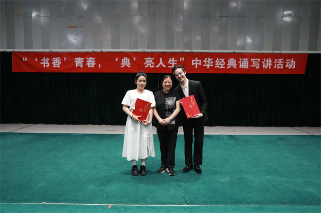 展示活动通过评委组现场打分的方式进行评比,共评出经典诵读集体一等奖1个、二等奖2个、三等奖3个、优秀奖5个,诗词讲解个人一等奖1名、二等奖1名、三等奖2名。党委书记黄珊珊宣布了获奖名单,并为获奖选手代表颁发证书。
