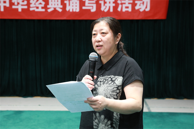 党委书记黄珊珊在讲话中表示,语言文字作为民族智慧与民族文化的载体,是人类宝贵的精神财富,也是中华民族的魂与根。希望同学们能以此次经典诵写讲活动为契机,大力倡导经典诵读之风气,热爱中国文化,传承中华文明,让经典诗文成为人生旅途中的丰富养料。