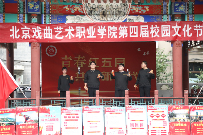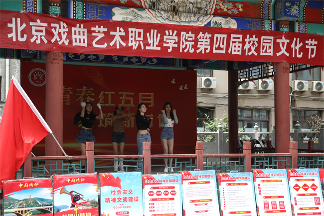 现场展演内容丰富、形式多样、精彩纷呈,既有红色主题表演《学习党的二十大,我们在行动》、朗诵《请党放心 强国有我》、歌曲《强军战歌》,也有原创戏曲形体健身操《戏·韵》、热情舞蹈《shut down》,还有朗朗上口的贯口串烧《喇嘛哑巴》、快板《天安门广场看升国旗》,各团支部、学生会、学生社团共展风采,好戏连连。