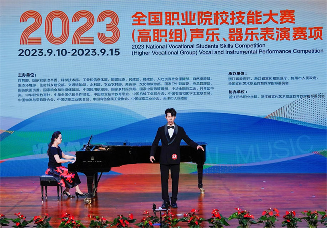 2023 年9月11日,全国职业院校技能大赛(高职组)声乐、器乐表演赛项在杭州开幕,赛程历时5天。来自全国各地职业院校的53支参赛队伍,共计159名选手在浙江艺术职业学院同台竞技,展示青春风采。