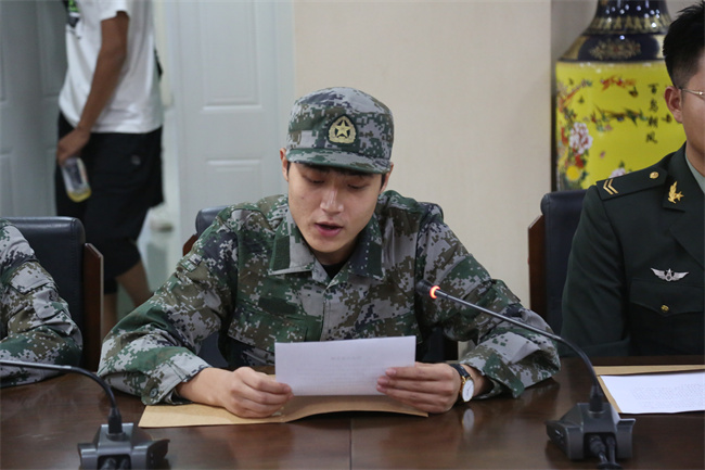在校退伍老兵高职音乐2022班贾旭结合自己的军旅生涯进行了分享。他回顾了自己在部队中的成长经历,对服役期间学校领导、老师的关怀表示感谢,并激励即将踏入军营的新兵们不负青春、勇往直前,为国防和军队建设亮出北戏青年最闪亮的名片。