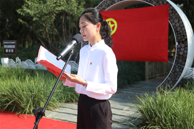 市直机关青联副主席、团市委组织部副部长昝莹莹用先辈的奋斗故事展现他们的追梦之路,激励同学们要坚定信仰,爱党爱国,用青春之血燃时代之梦。
