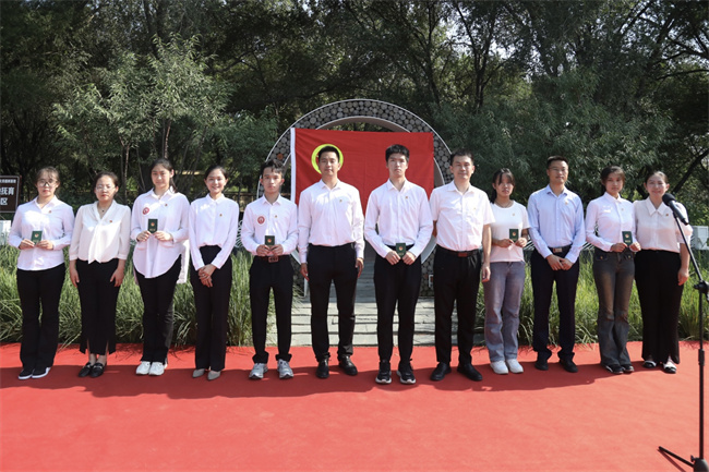 ▲市直机关青联秘书长刘军带领全体团员进行入团宣誓