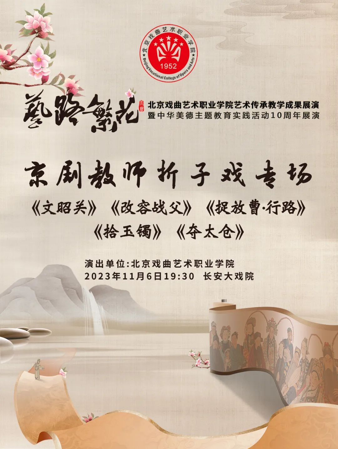 11月2日起,北京戏曲艺术职业学院艺术传承教学成果展演将转战长安大戏院。届时,北戏将继续为观众奉上原创少儿京剧《少年马连良》、京剧《雏凤凌空》《四郎探母》、京剧教师折子戏专场等经典剧目以及将联合北京京剧院推出的京剧演唱会等精彩演出。