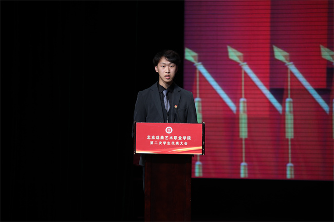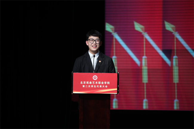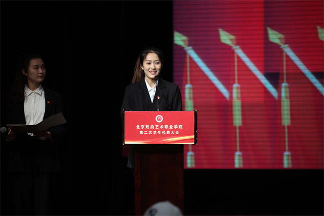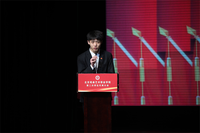 学生会主席陈煜向大会宣读了《北京戏曲艺术职业学院学生会章程》(修订案)。