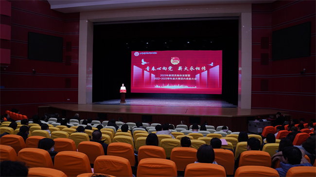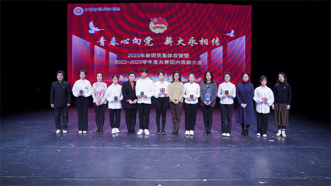 为深入学习贯彻习近平新时代中国特色社会主义思想和党的二十大精神,加强学院共青团队伍建设及强化仪式教育,厚植青年爱党、爱国情怀,增强团员的光荣感和使命感,12月27日,学院团委在少儿戏剧场一层举办“青春心向党,薪火永相传”2023年新团员集体宣誓暨2022-2023学年度共青团表彰大会。学院党委书记黄珊珊、副院长焦振宇出席了大会,学院团委委员、辅导员、班主任与学院200余名团员参加了大会。大会由中专中国舞2018级团支部书记李漫主持。
