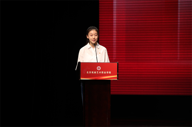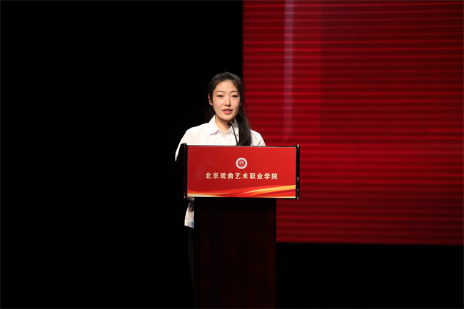 高职形体2021级团支部韩天雨作为获奖团员代表发言,她表达了对团组织的感激之情,并表示自己今后将继续努力,充分发挥模范带头作用,努力成为综合素质全面发展的新时代北戏好青年。