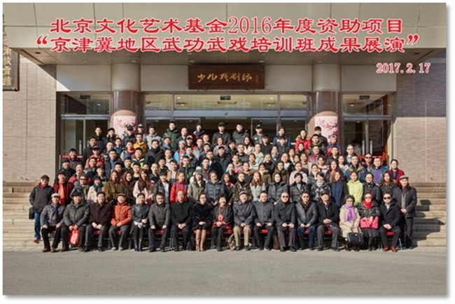 (2017年2月北京文化艺术基金人才培养2016年度资助项目—京津冀地区武功武戏表演人才培训班合影)