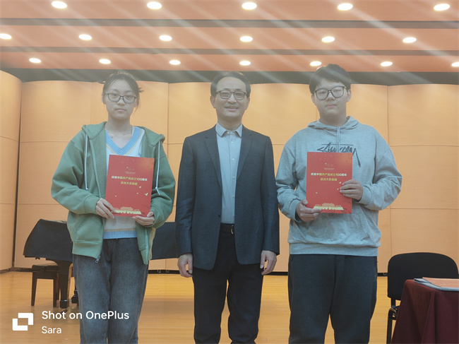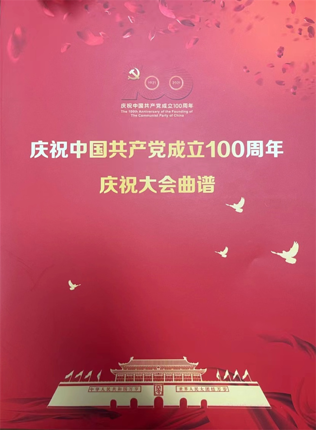 此外,李刚教授还为学生们赠送了《庆祝中国共产党成立 100 周年庆祝大会曲谱》作为礼物。这份珍贵的礼物不仅是对学生们音乐学习的鼓励,更是一份对党的深情献礼。