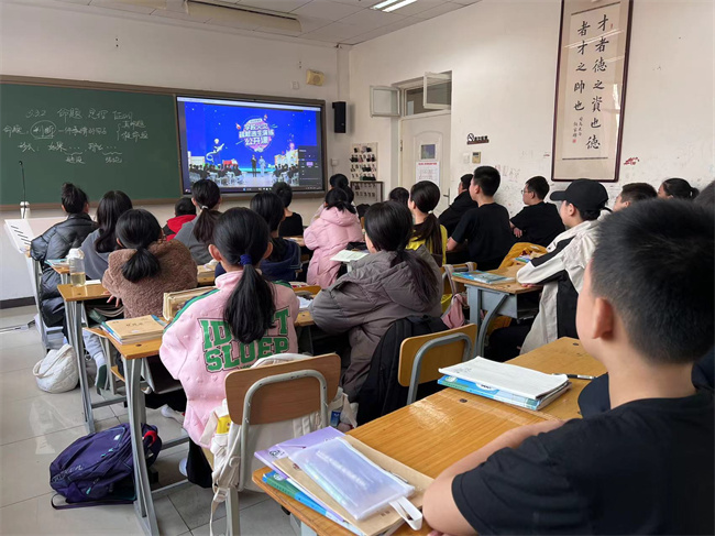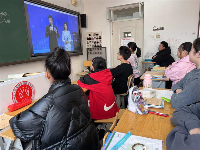 学生们认真观看2024年春季学校火灾疏散逃生演练公开课