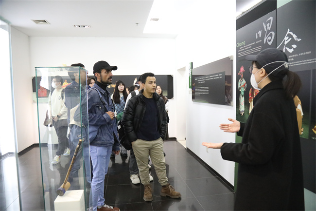 北戏为南开大学的外国留学生们安排的第一项活动是参观学院校史馆,讲解老师介绍了中国戏曲的基础知识,如戏曲的行当、服饰、表演场所、表演特色等,留学生们表现出了极大的兴趣。参观结束后,培训交流活动正式开始,由学院副院长许翠教授为留学生们授课和亲切交流,培训结束后,为留学生们颁发证书并与他们合影留念。