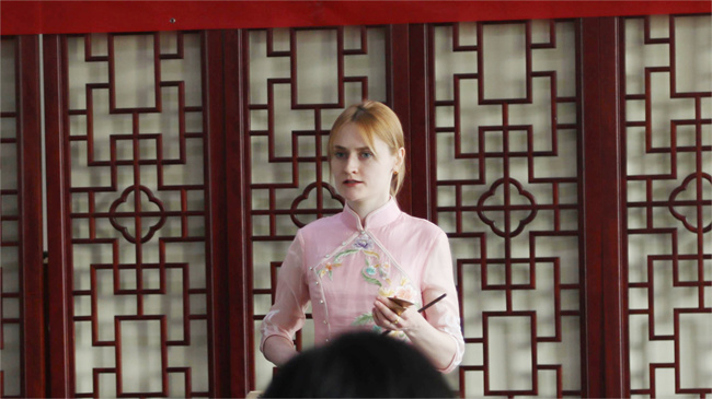 本次前来北戏交流培训的来自世界各地的留学生,都是中国传统文化的爱好者。其中很多人是中国曲艺艺术的爱好者,对说相声、说评书、唱鼓曲充满兴趣。为了让同学们更好地了解传统曲艺艺术,北戏曲艺系的老师们对京韵大鼓的各个流派特征和代表人物进行了耐心讲解;曲艺系的同学们还进行了示范演唱。师生们的表演博得了留学生们阵阵热烈的掌声。