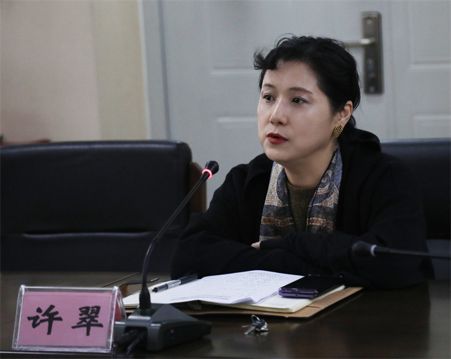 副院长许翠、副院长吴蕾分别就所分管的工作和系部情况进行了介绍。许翠副院长重点说明我院戏曲专业的办学特色和“戏曲表演专业群”的建设情况,吴蕾副院长着重阐述了我院近年来“双高”建设、新课标建设、培优推优等方面的经验和做法。