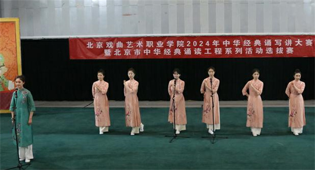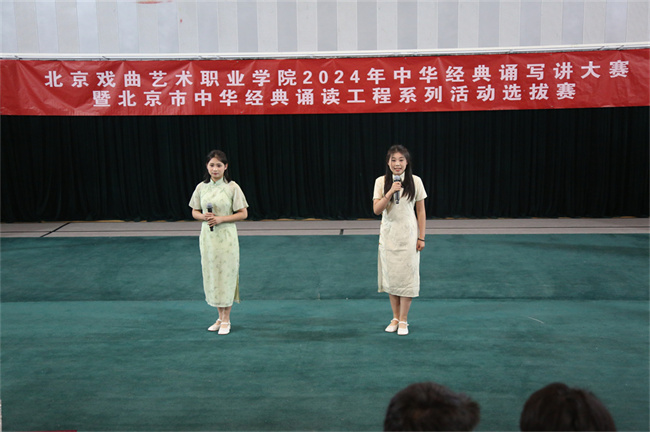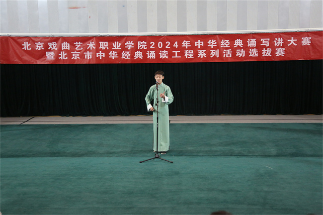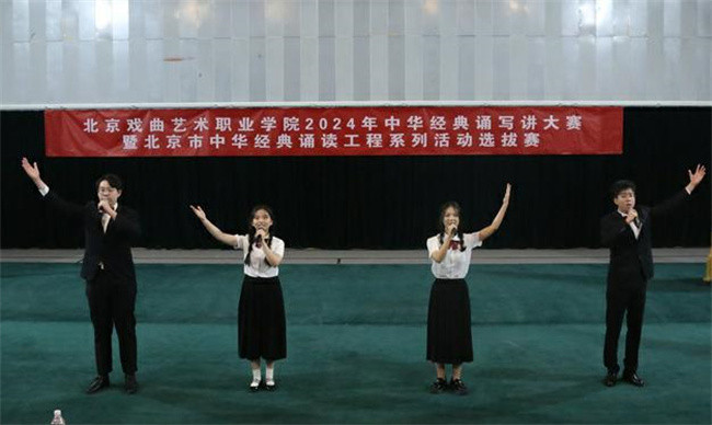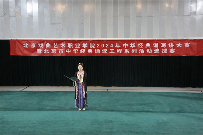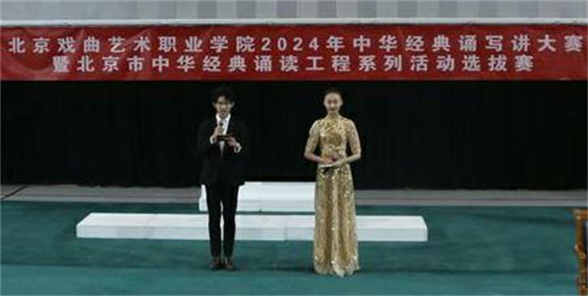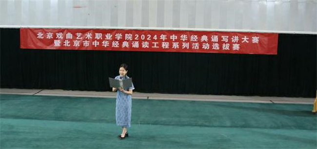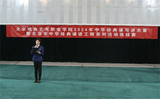为贯彻落实党的二十大精神,服务教育强国、文化强国建设,加大国家通用语言文字推广力度,传承发展中华优秀语言文化,培养广大学生对中华传统文化的热爱,进一步增强民族自豪感和文化自信,5月29日在下午,我院在少儿戏剧场四层举办了“经典相伴,文脉赓续”2024年中华经典诵写讲大赛暨北京市中华经典诵读工程系列活动校内选拔赛。大赛活动由学院语言文字工作领导小组指导,学院办公室主办,学生处、公共教学部、教务处、图书电教中心、团委、戏剧影视表演系协办。党委书记黄珊珊、副院长吴蕾、副院长焦振宇出席大赛现场。