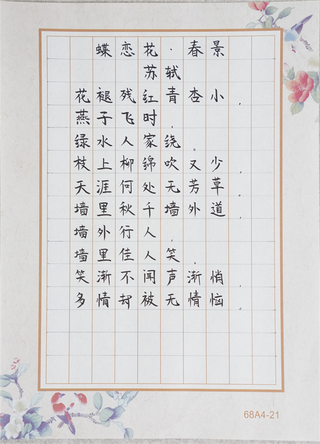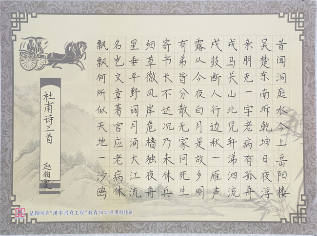 除现场比拼的经典诵读赛项、诗词讲解赛项,大赛活动还开展了“笔墨中国”汉字书写赛项,通过汇总收集各系学生报送的软、硬笔书法作品,由专业评委组老师进行线下评审。广大具有书法爱好特长的同学积极参与,7个系共报送35件参赛作品。活动现场通过电子屏播放的方式,对优秀书法作品进行了展示。